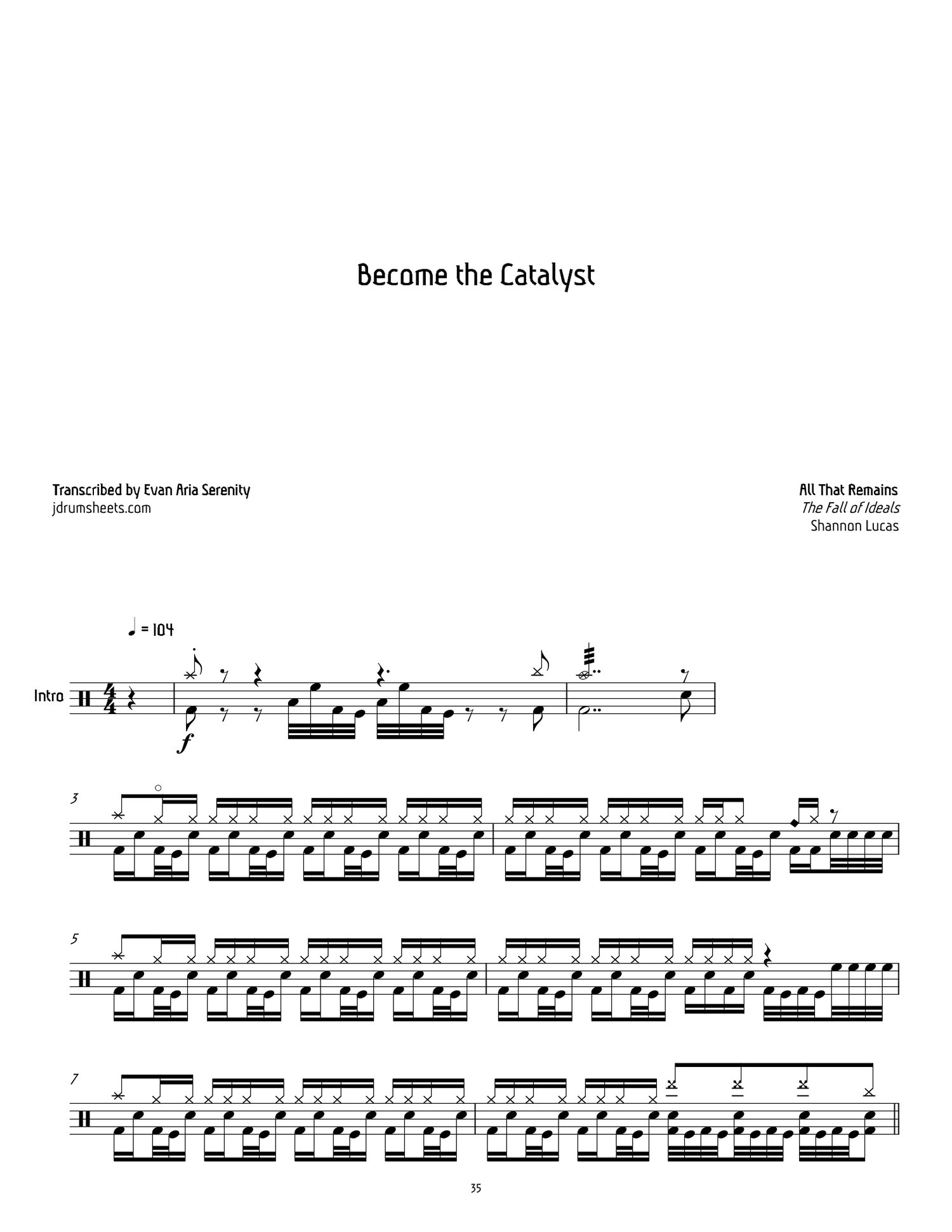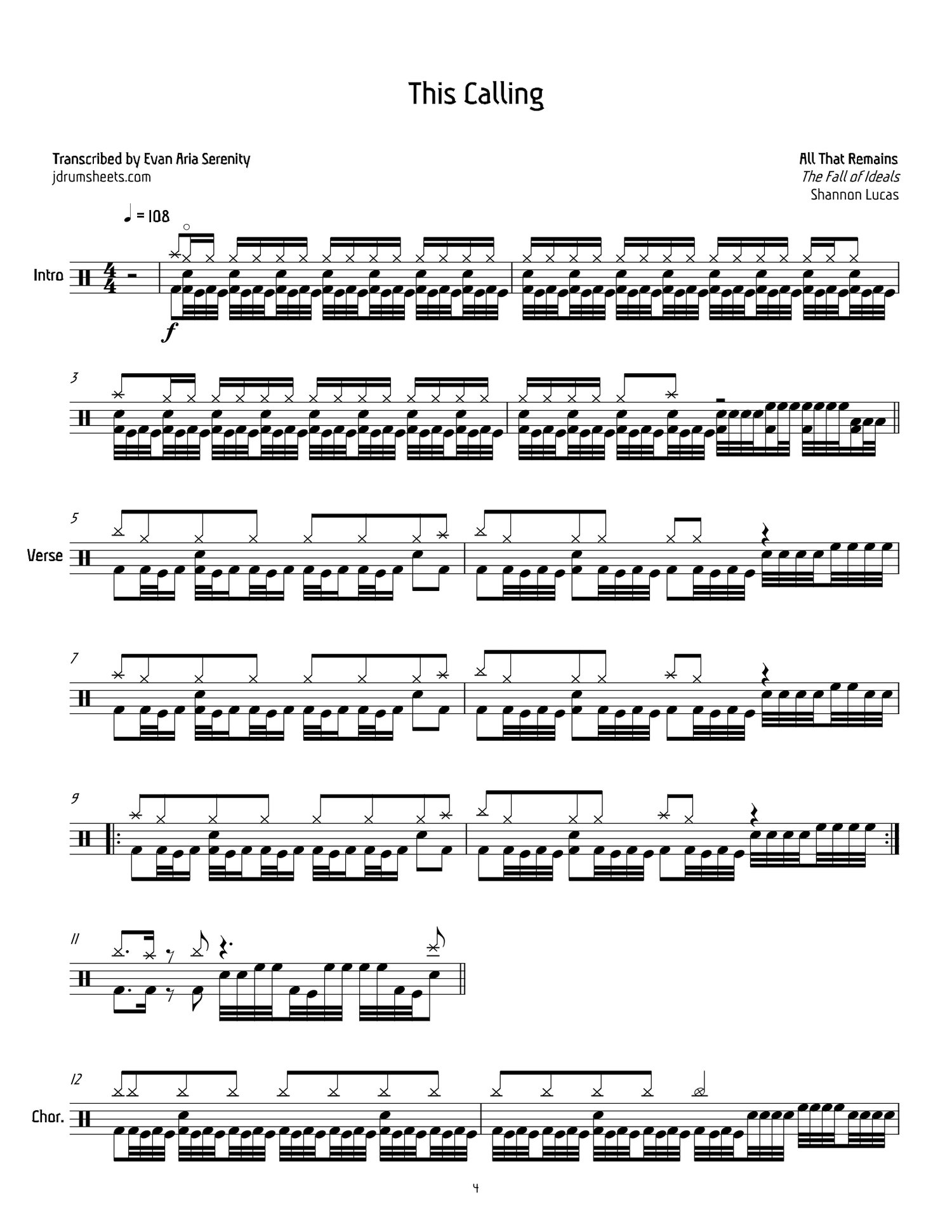 Drum sheet music transcriptions for the entirety of All That Remains' 2006 album The Fall of Ideals. Drums by Shannon Lucas. Melodic metalcore, overall difficulty 4/5.