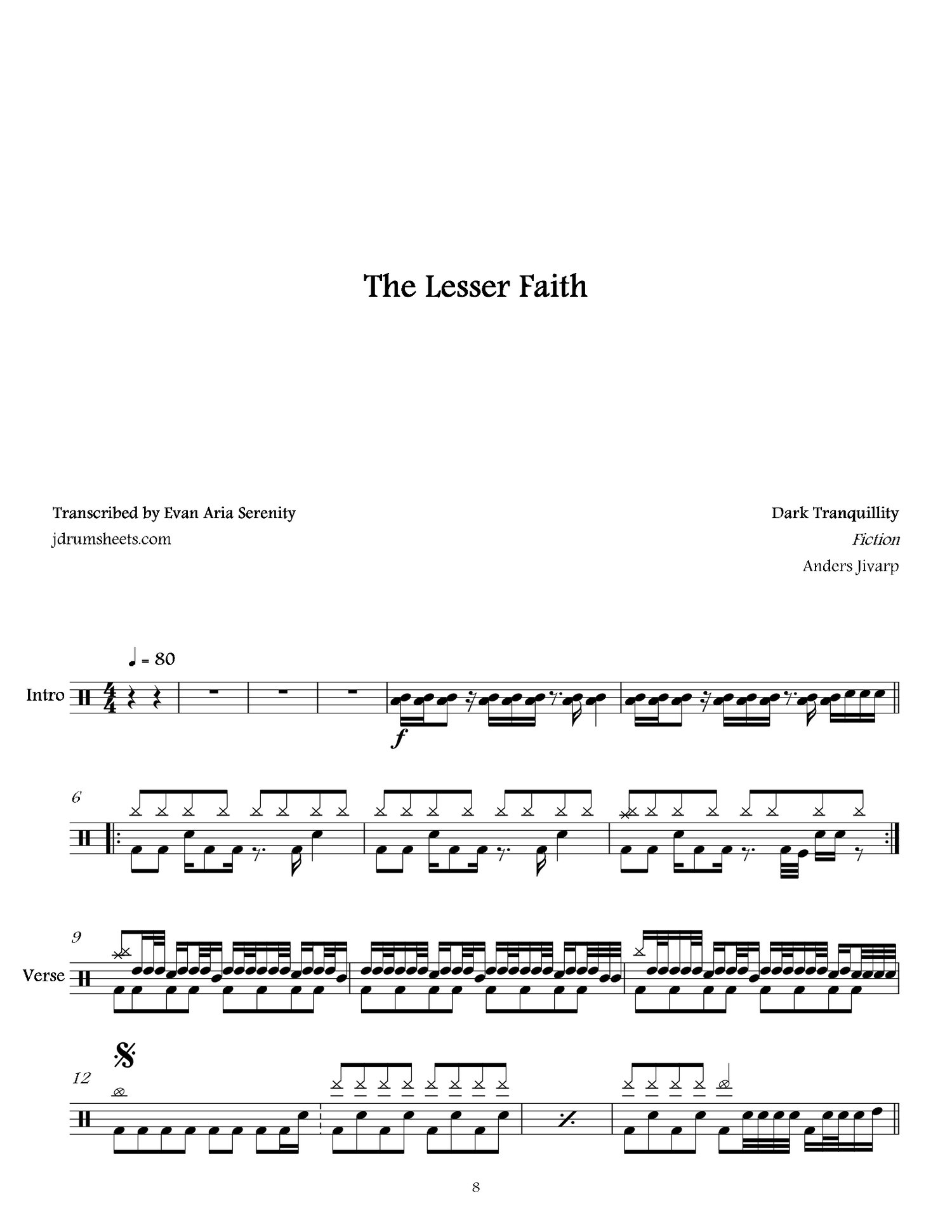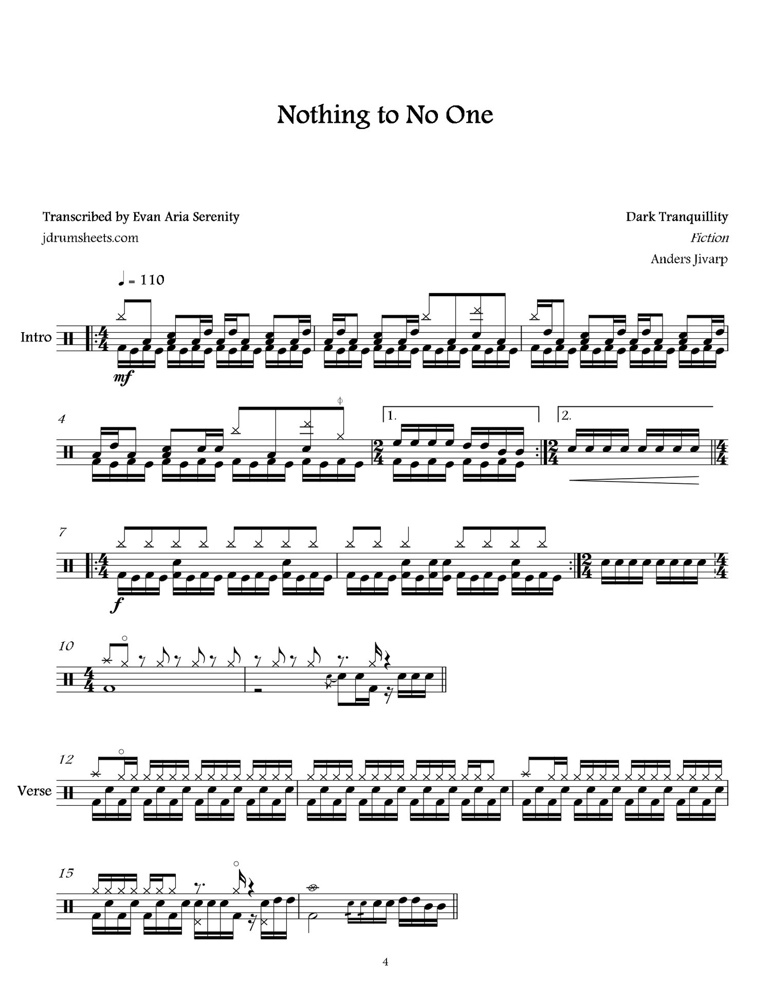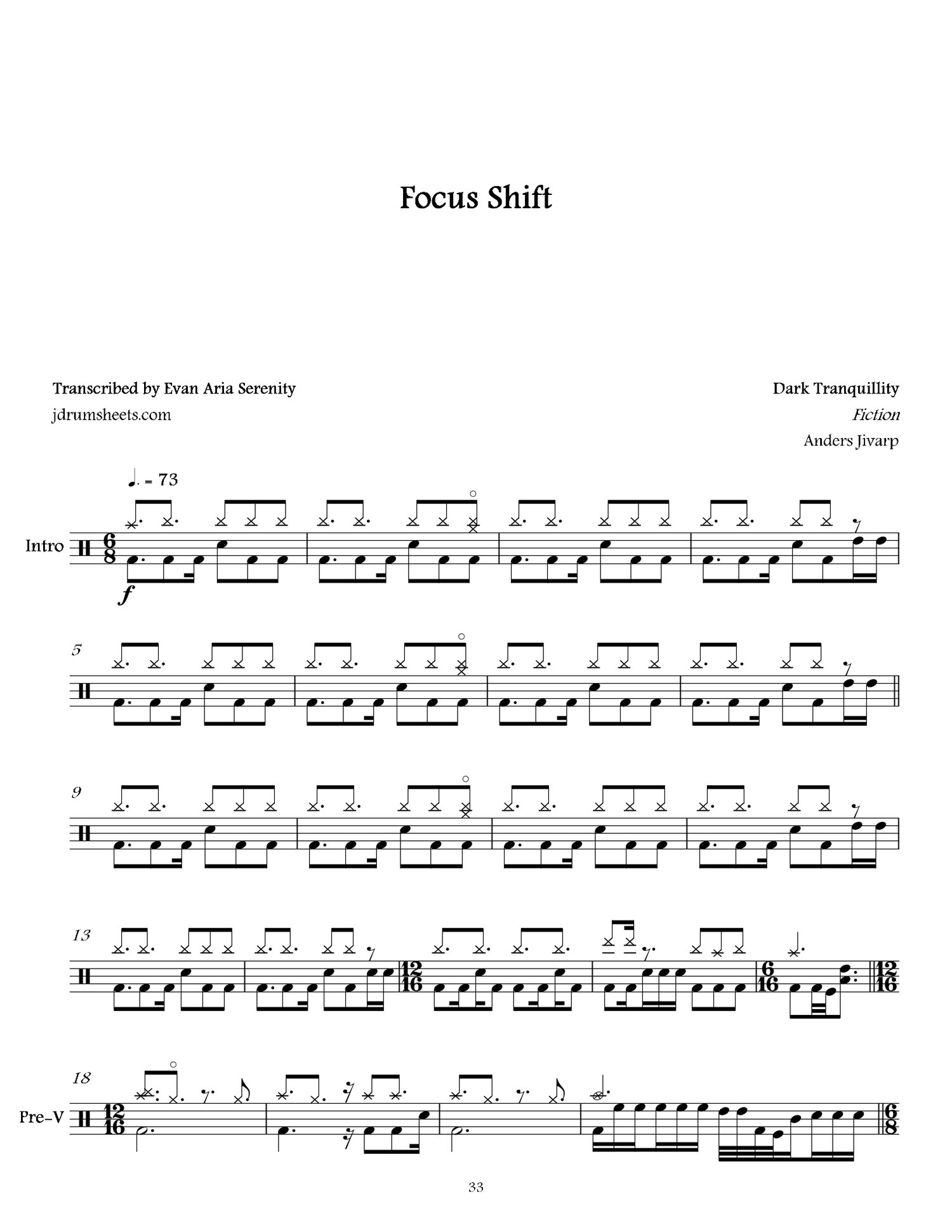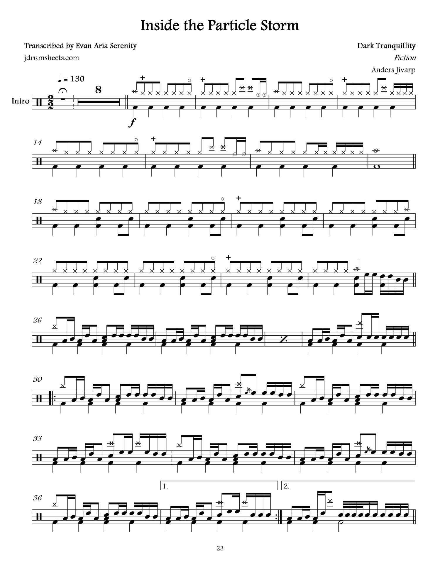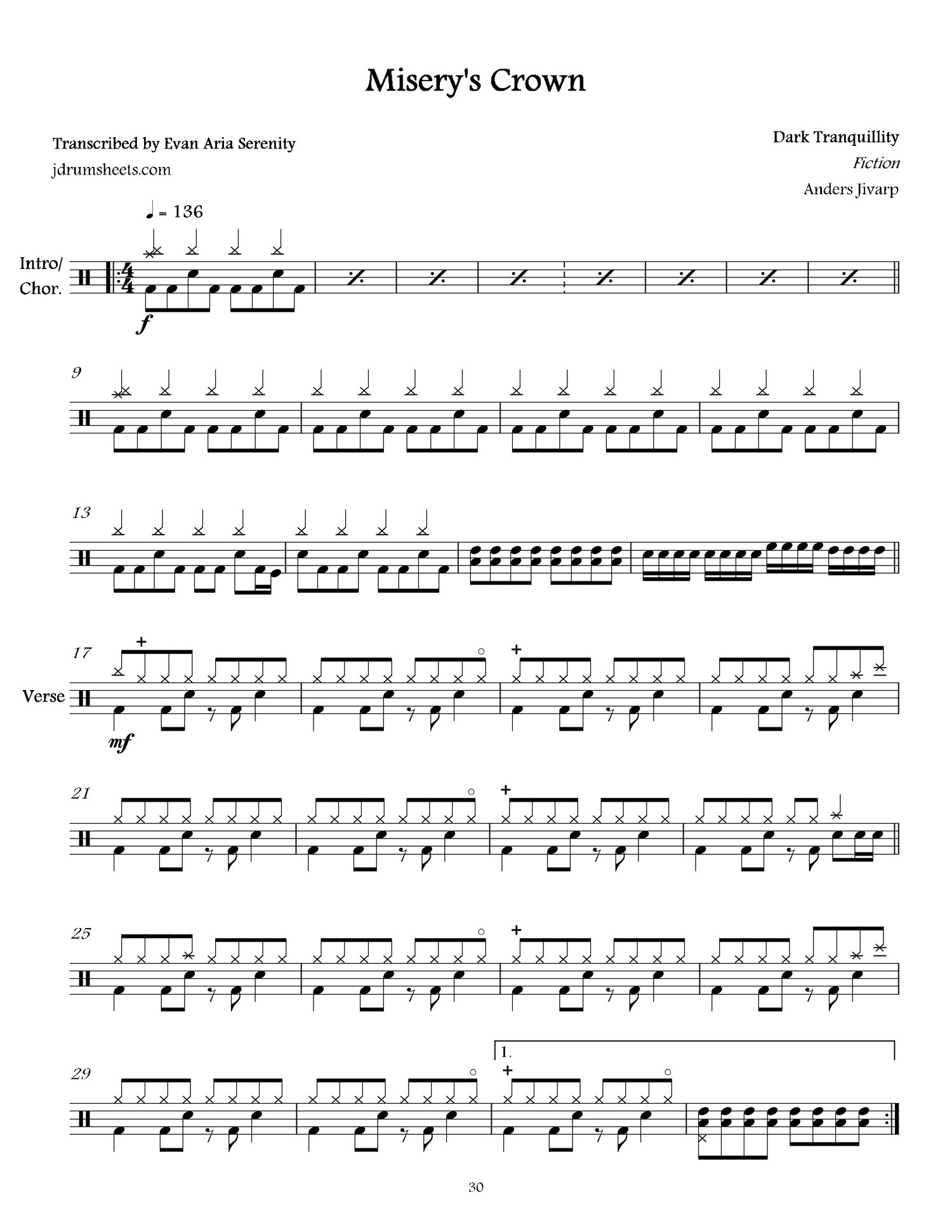 Drum sheet music transcriptions for the entirety of Dark Tranquillity's 2007 album Fiction. Drums by Anders Jivarp. Melodic death metal, overall difficulty 4/5.