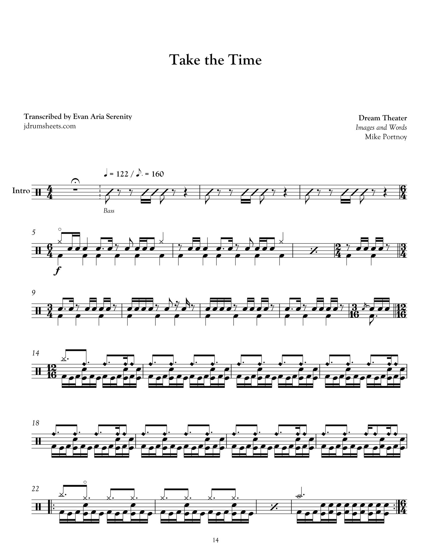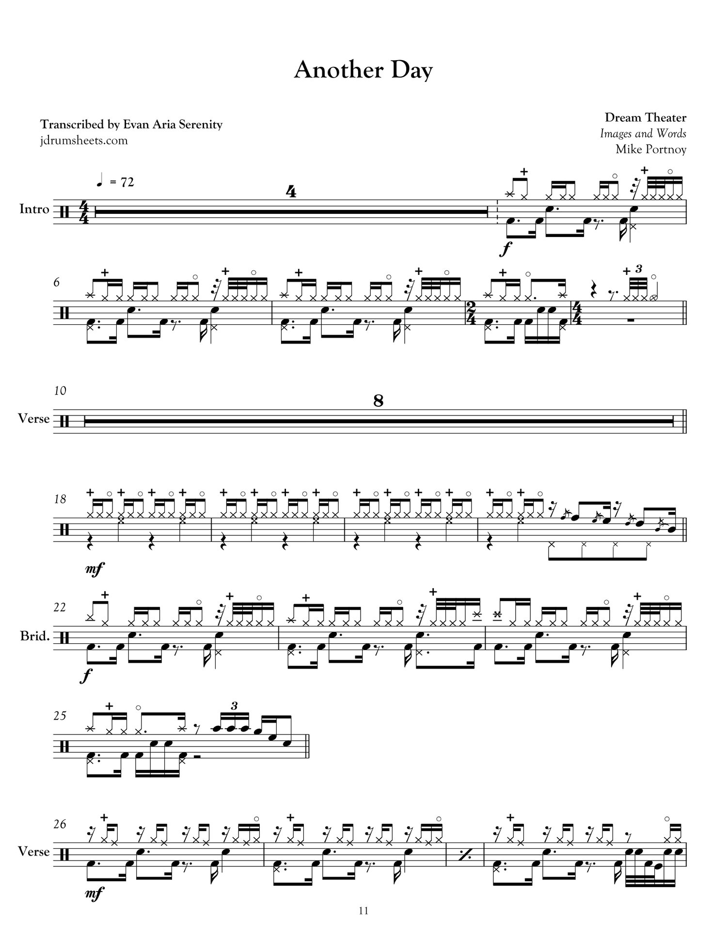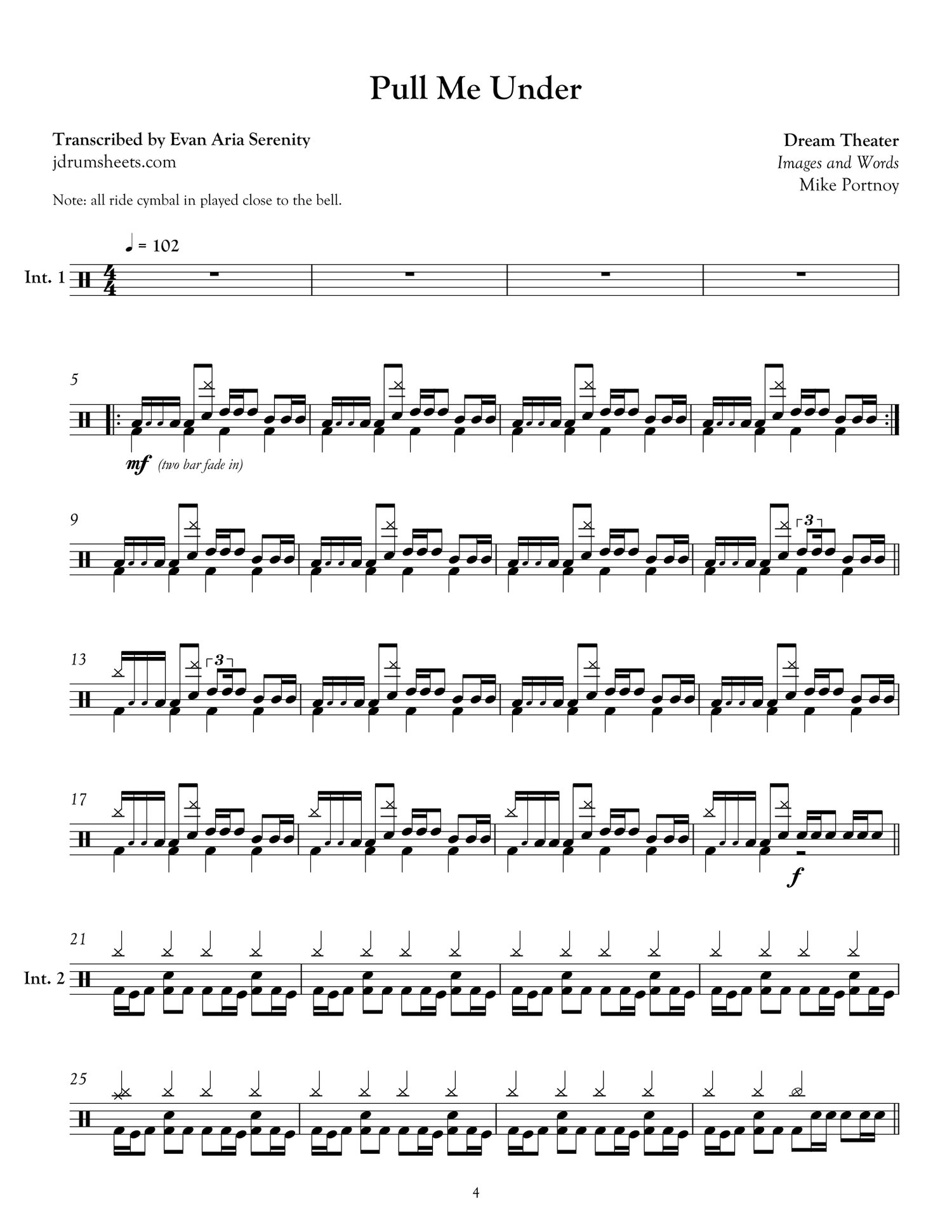 Drum sheet music transcriptions for the entirety of Dream Theater's pioneering 1992 album, Images and Words. Drums by Mike Portnoy. Progressive metal, overall difficulty 5/5.