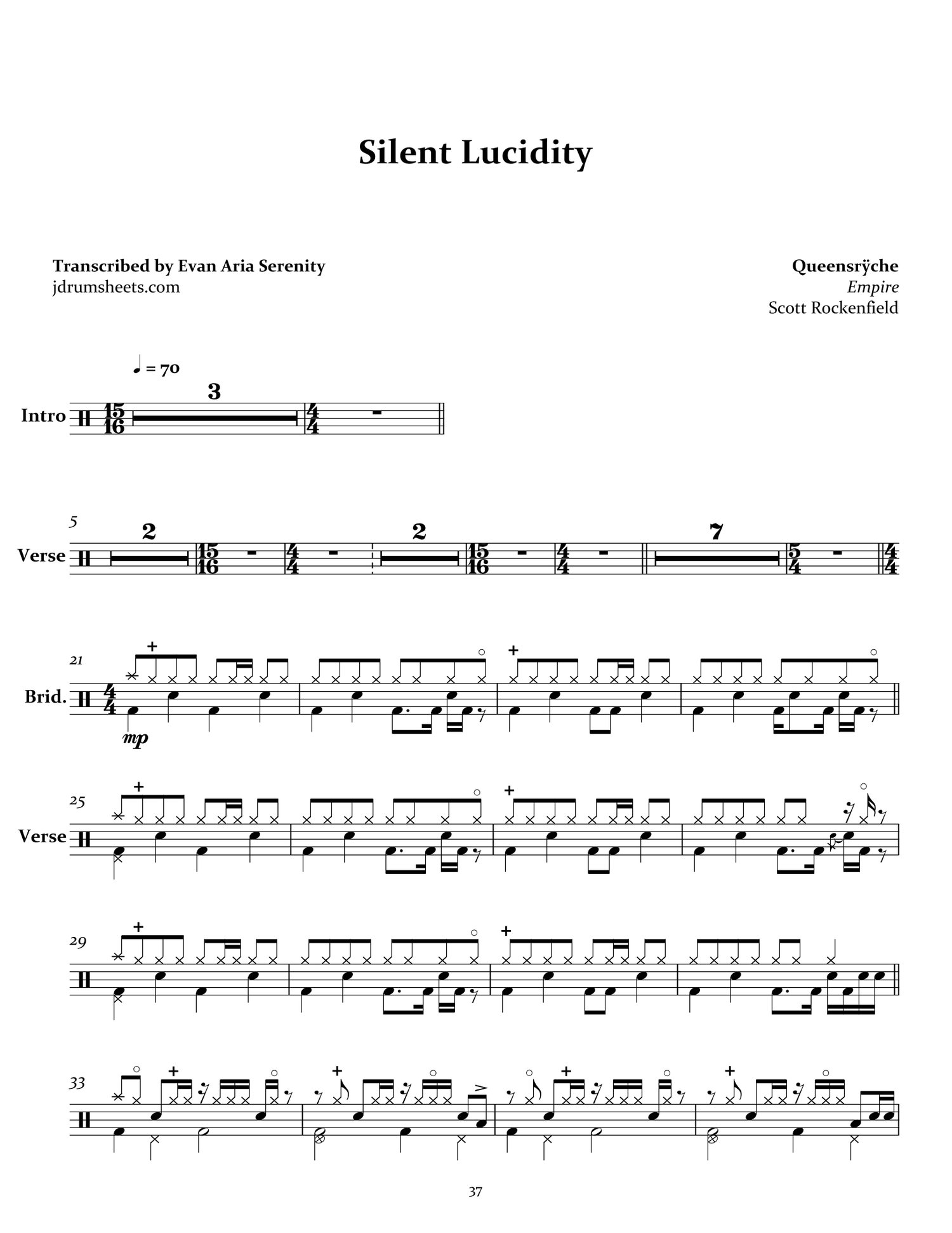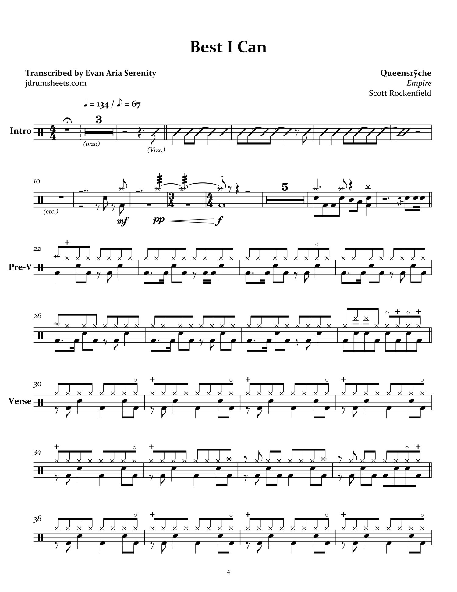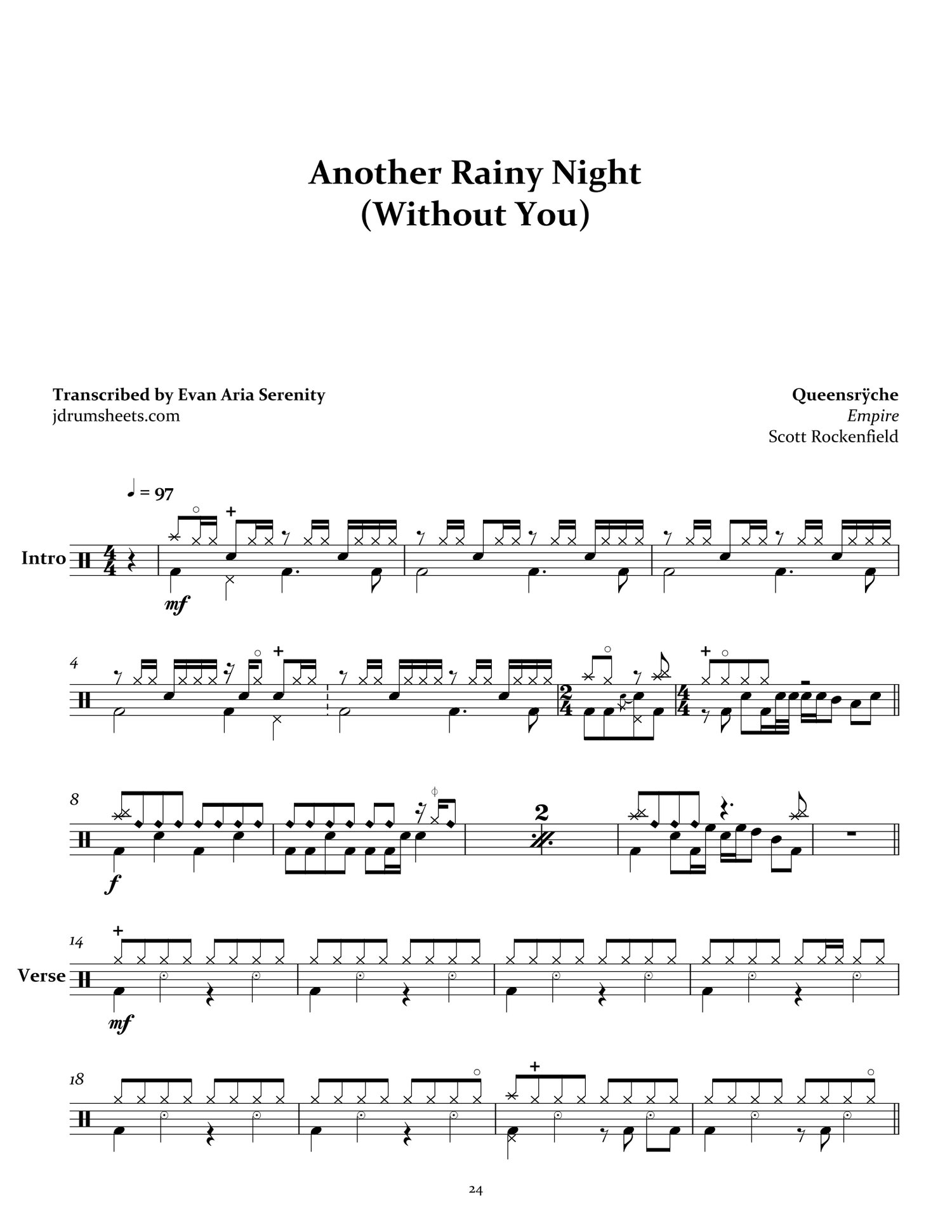 Drum sheet music transcription for the entirety of Queensrÿche's 1990 album Empire. Drums by Scott Rockenfield. Progressive metal, overall difficulty 4/5.