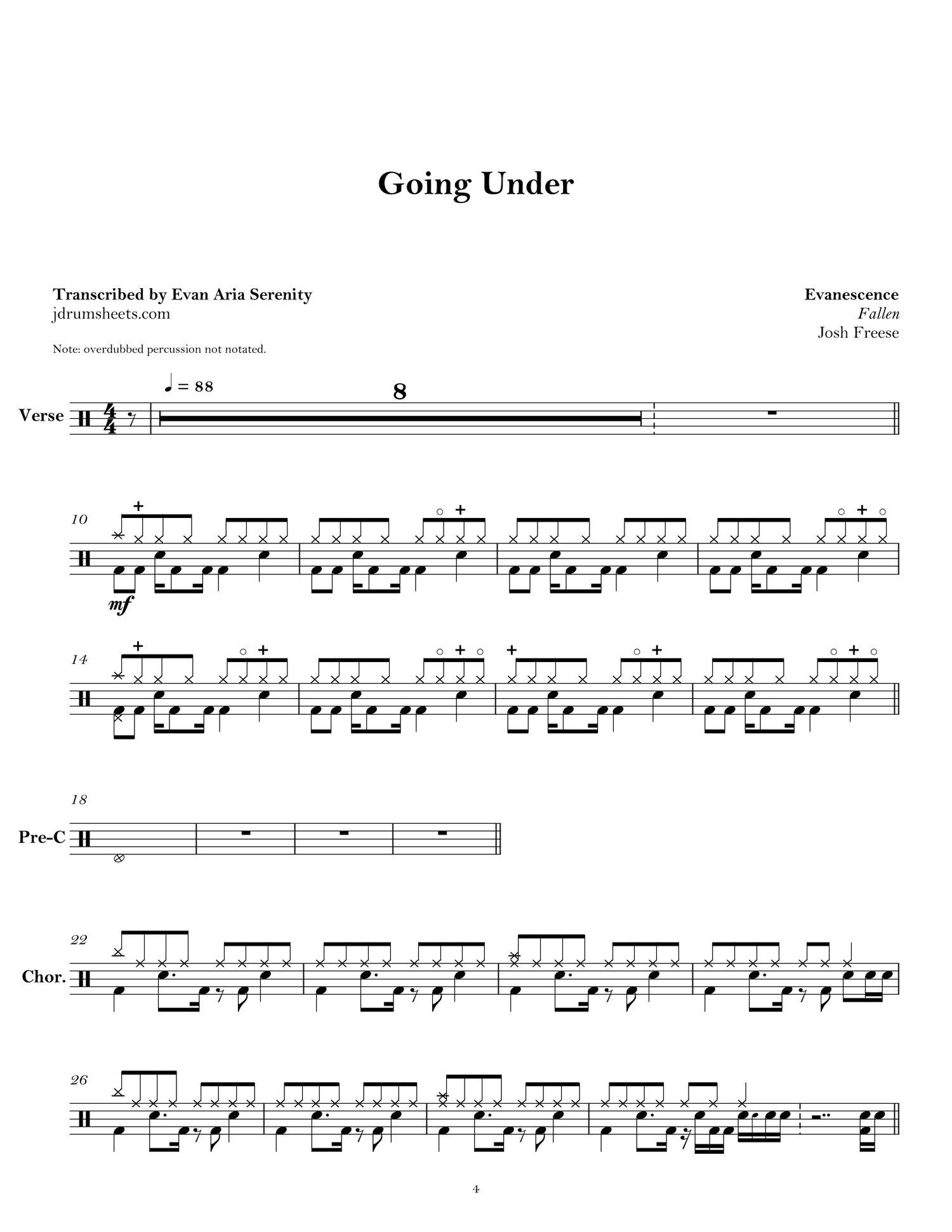 Drum sheet music transcriptions for the entirety of Evanescence's debut album Fallen (2003). Drums by Josh Freese. Alternative metal, difficulty 3/5.