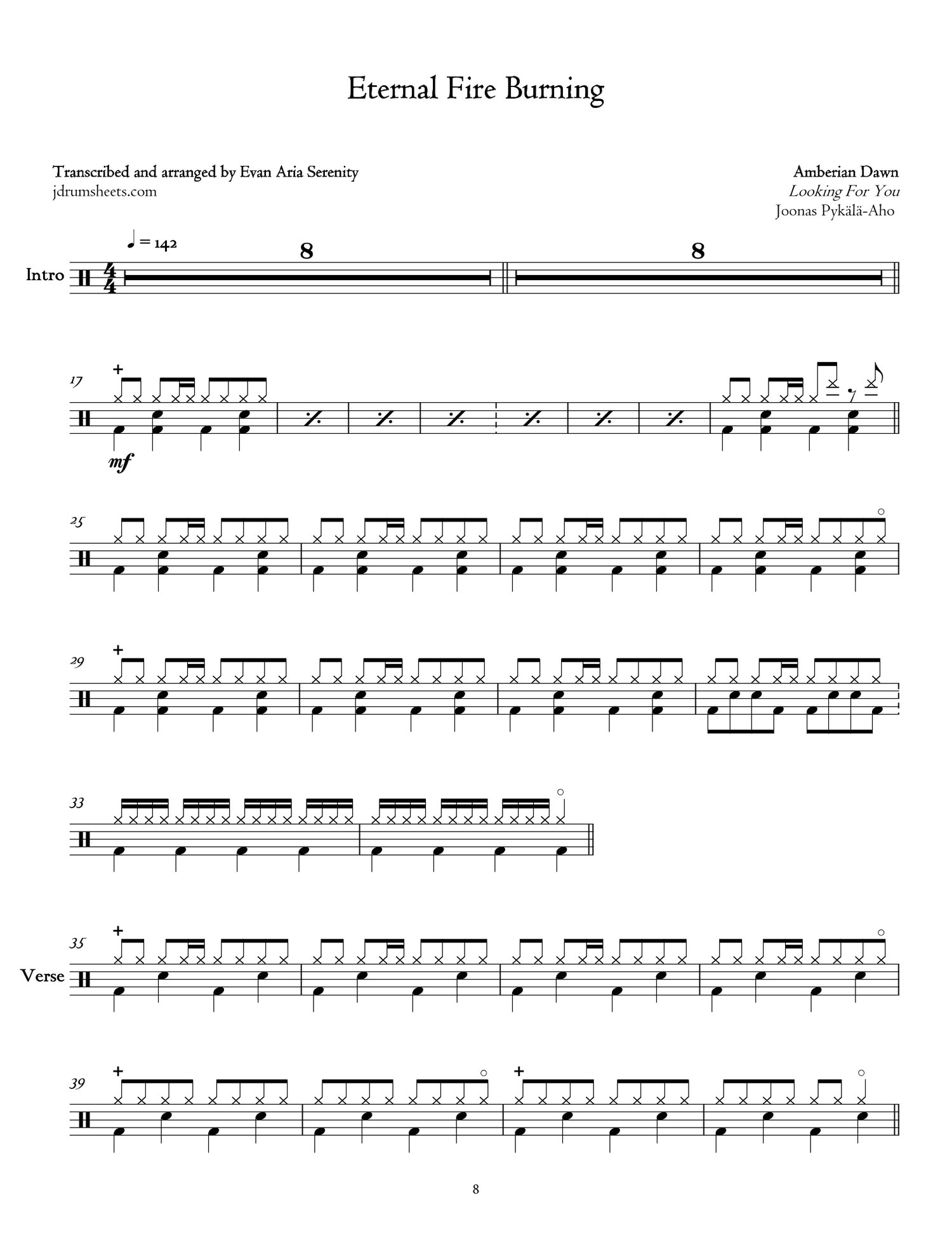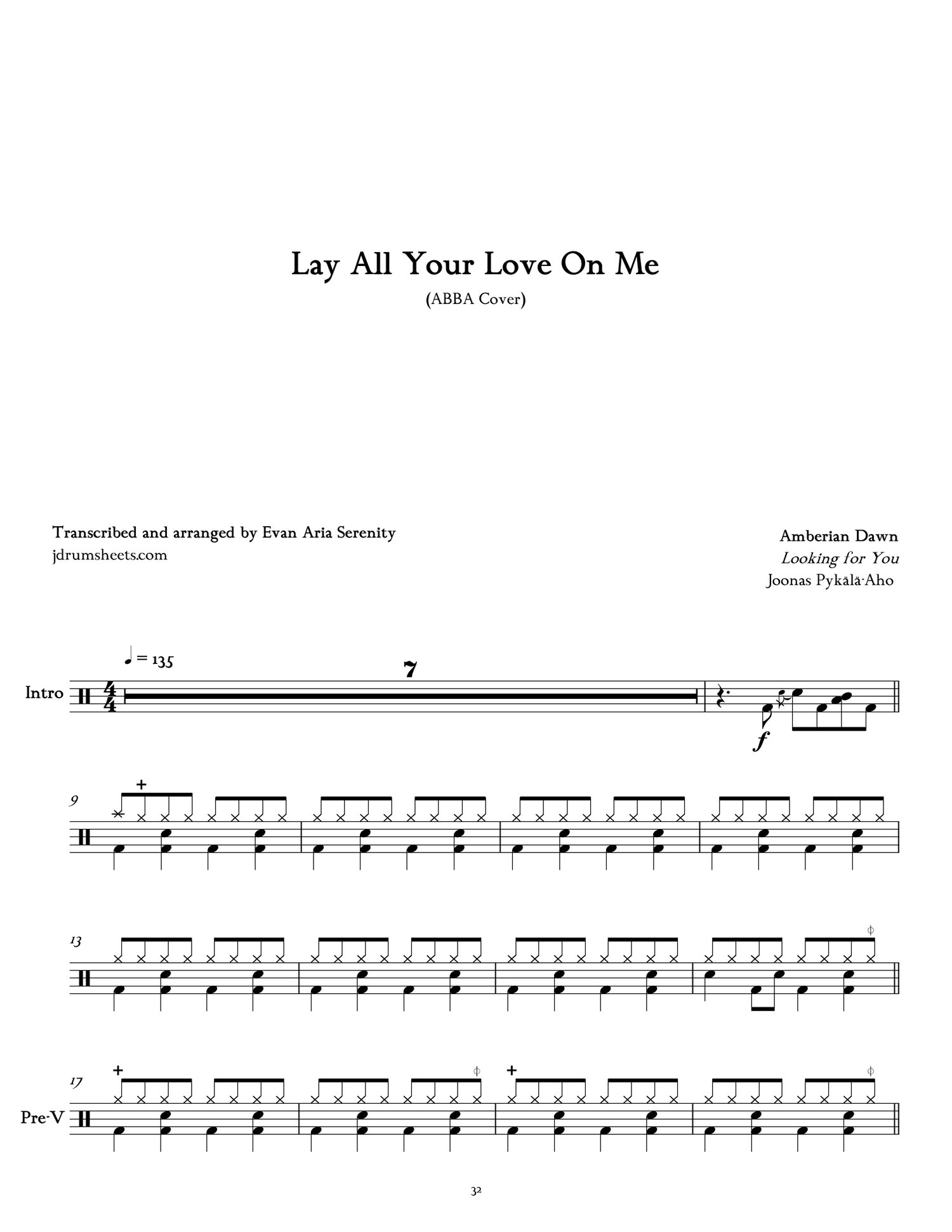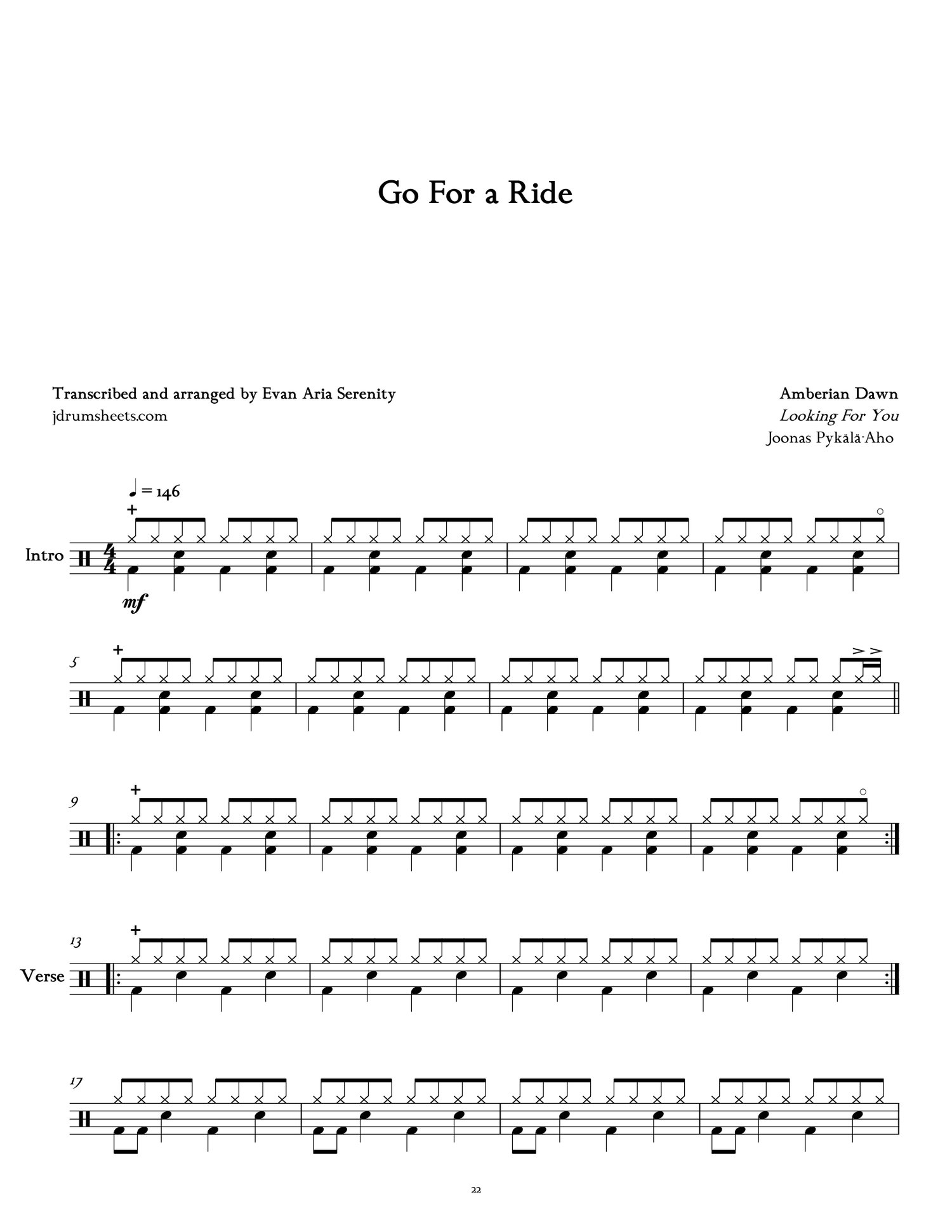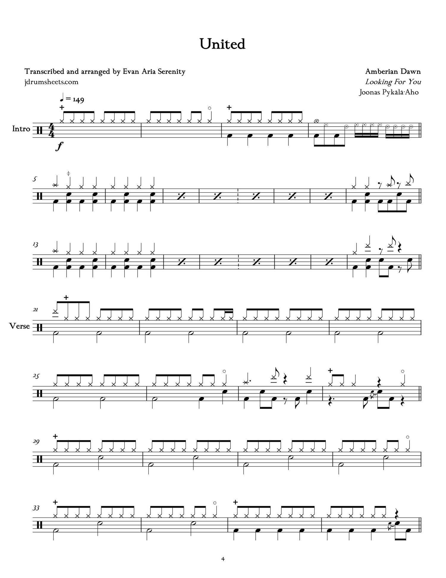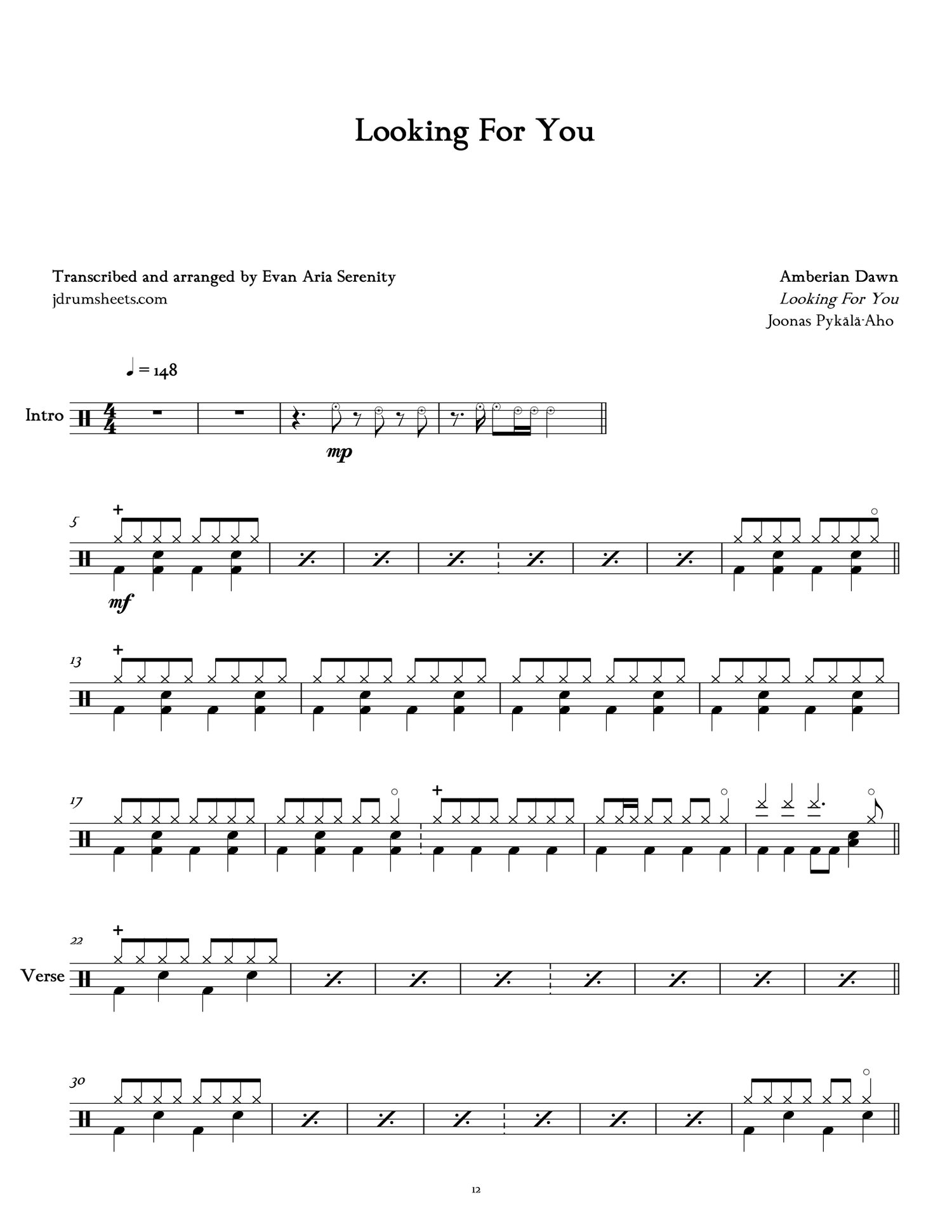 Drum sheet music transcriptions for the entirety of Amberian Dawn's 2020 album Looking For You. Drums by Joonas Pykälä-Aho. Pop metal, overall difficulty 3/5.