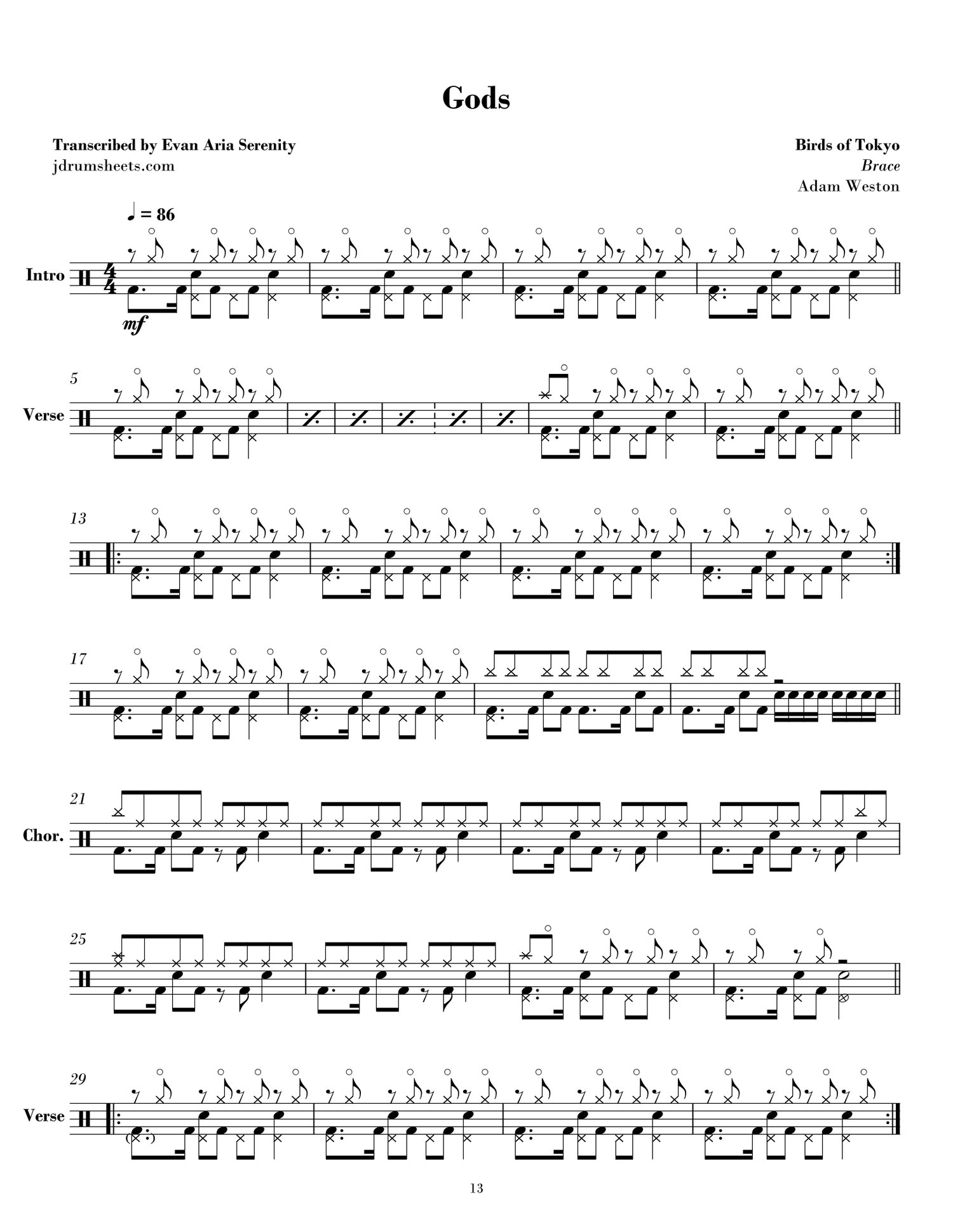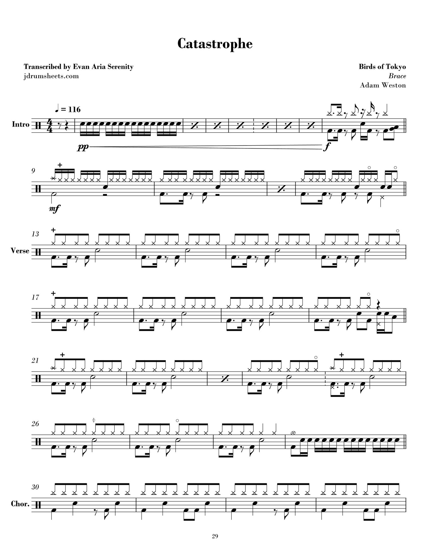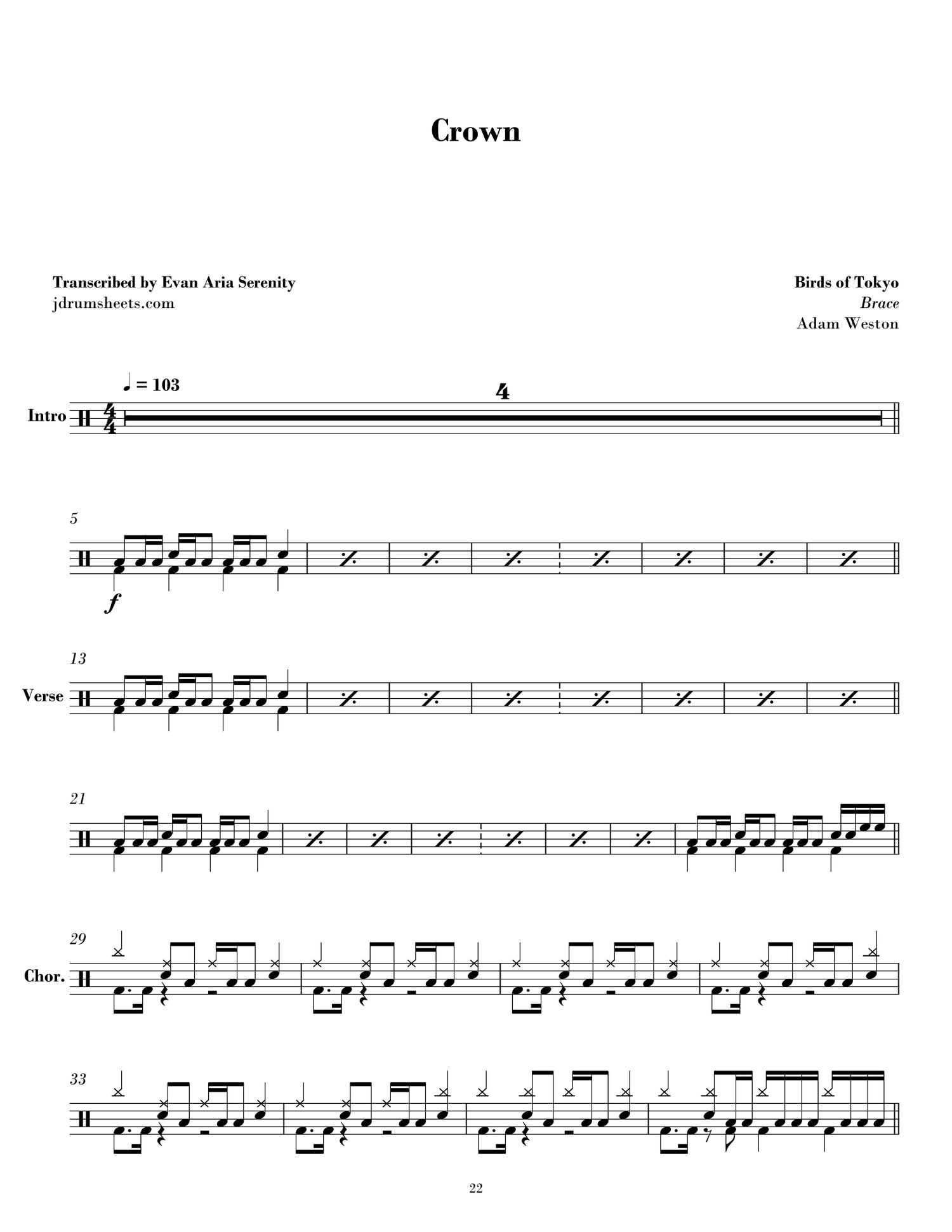 Drum sheet music transcriptions for the entirety of Birds of Tokyo's 2016 album, Brace. Drums by Adam Weston. Alternative rock, overall difficulty 3/5.