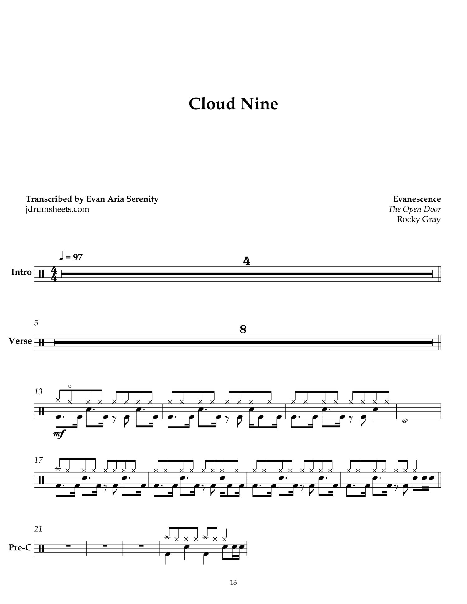 Drum sheet music transcriptions for the entirety of Evanescence's 2006 album, The Open Door. Drums by Rocky Gray. Gothic metal, overall difficulty 3/5.