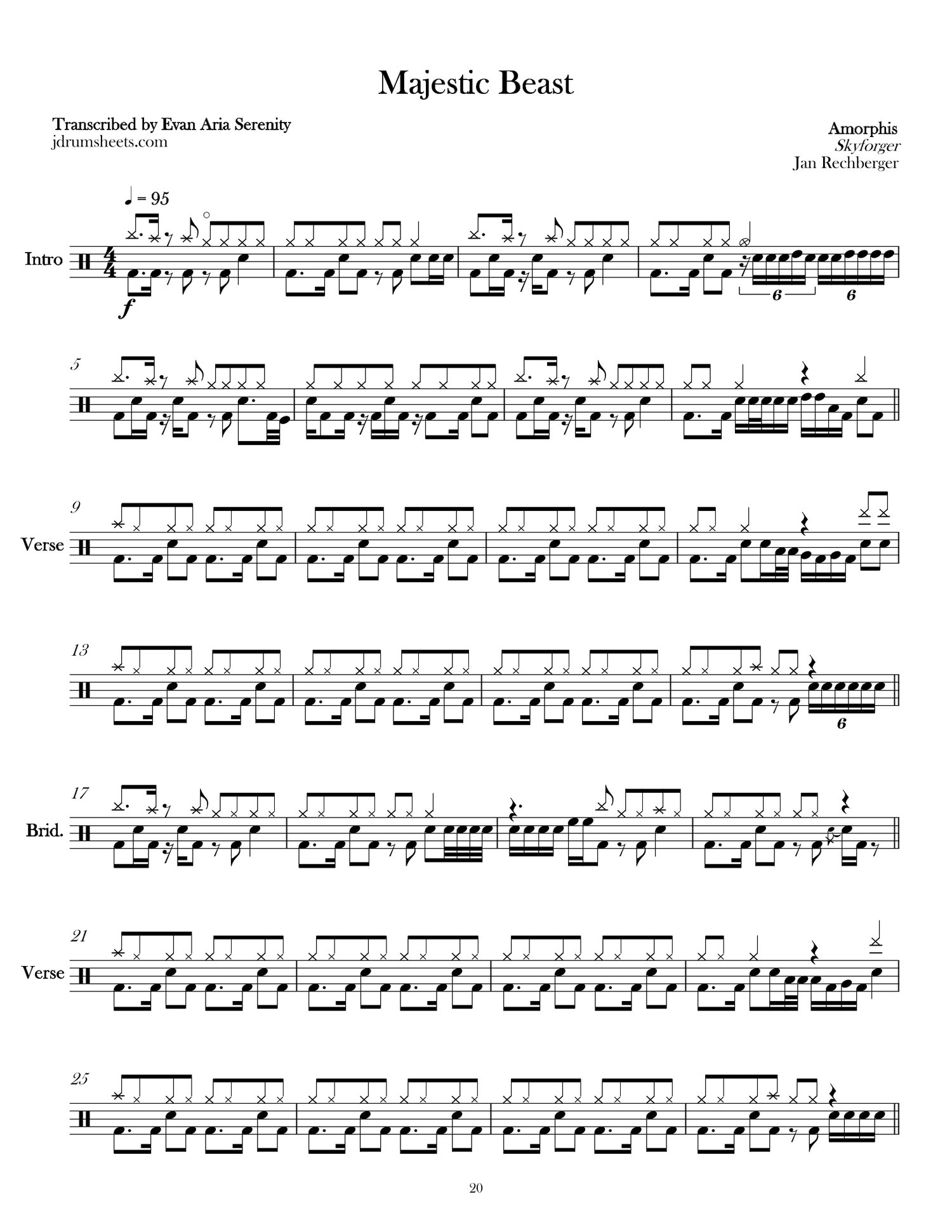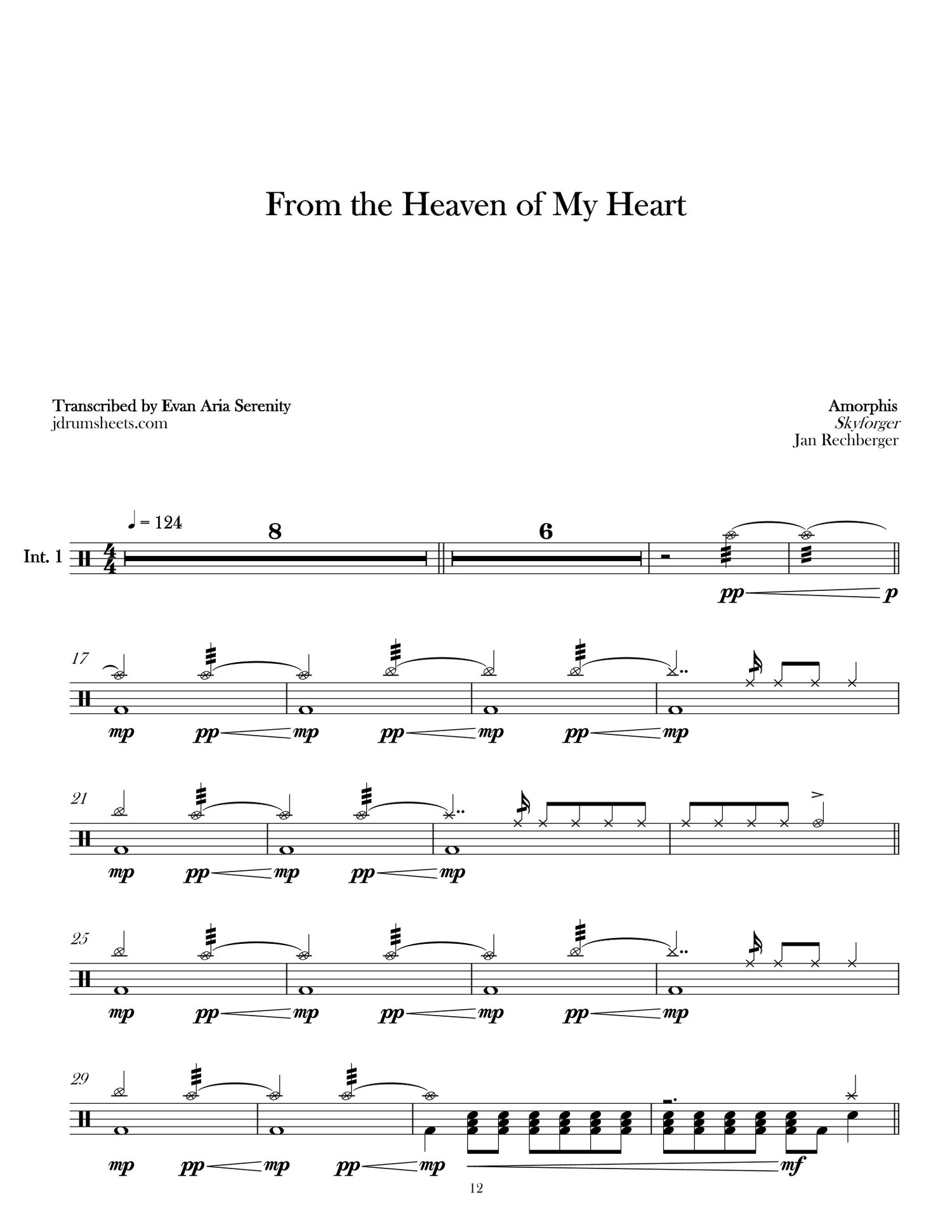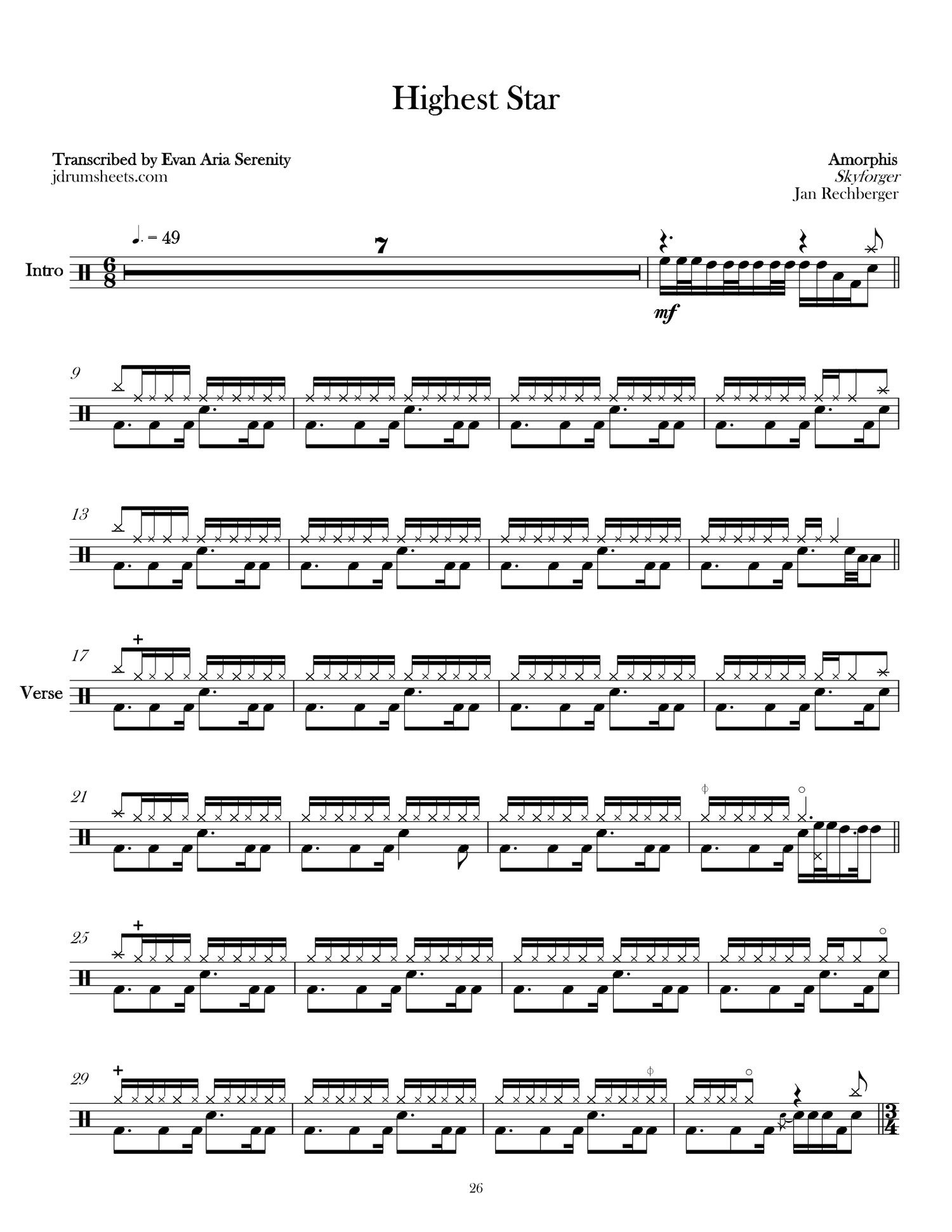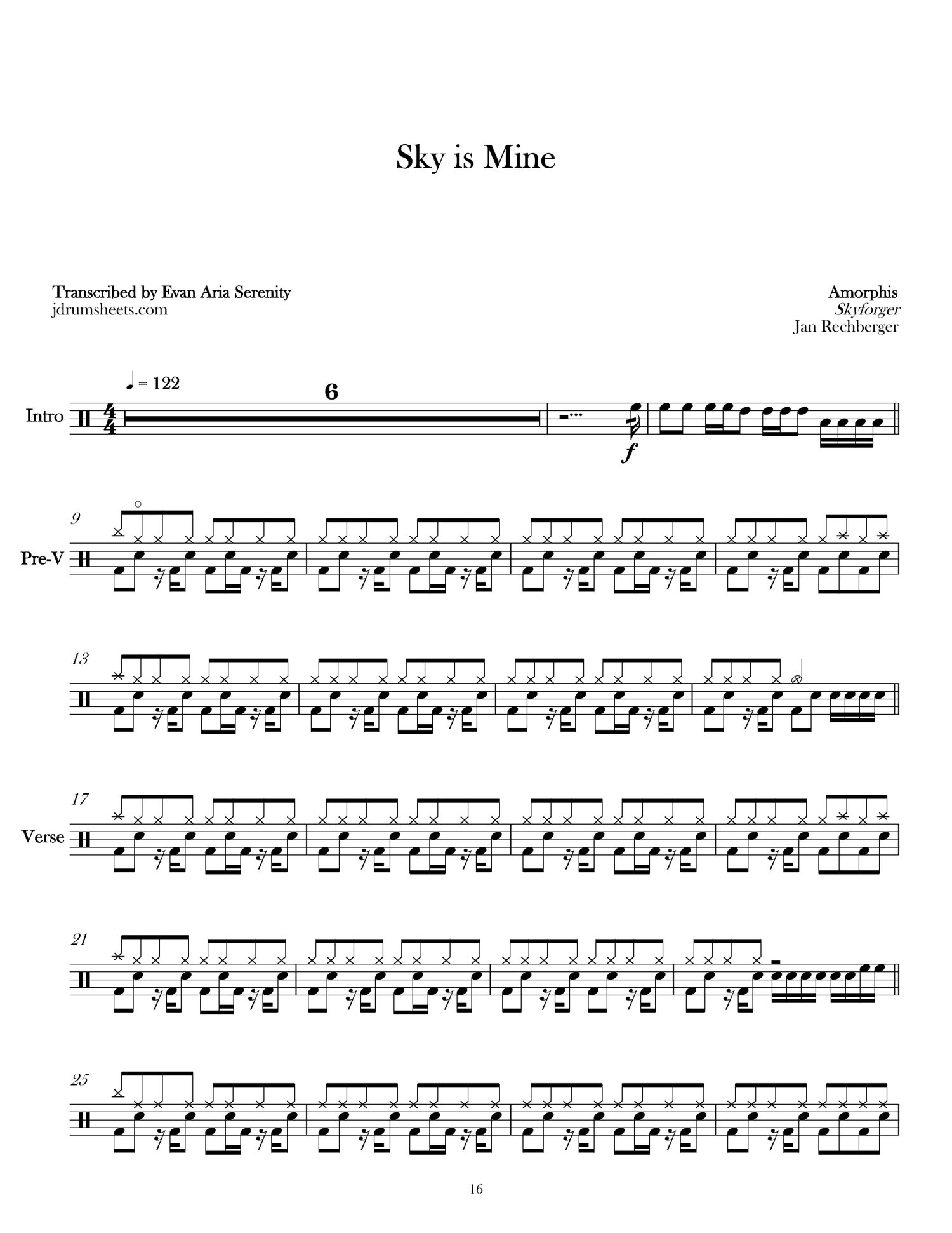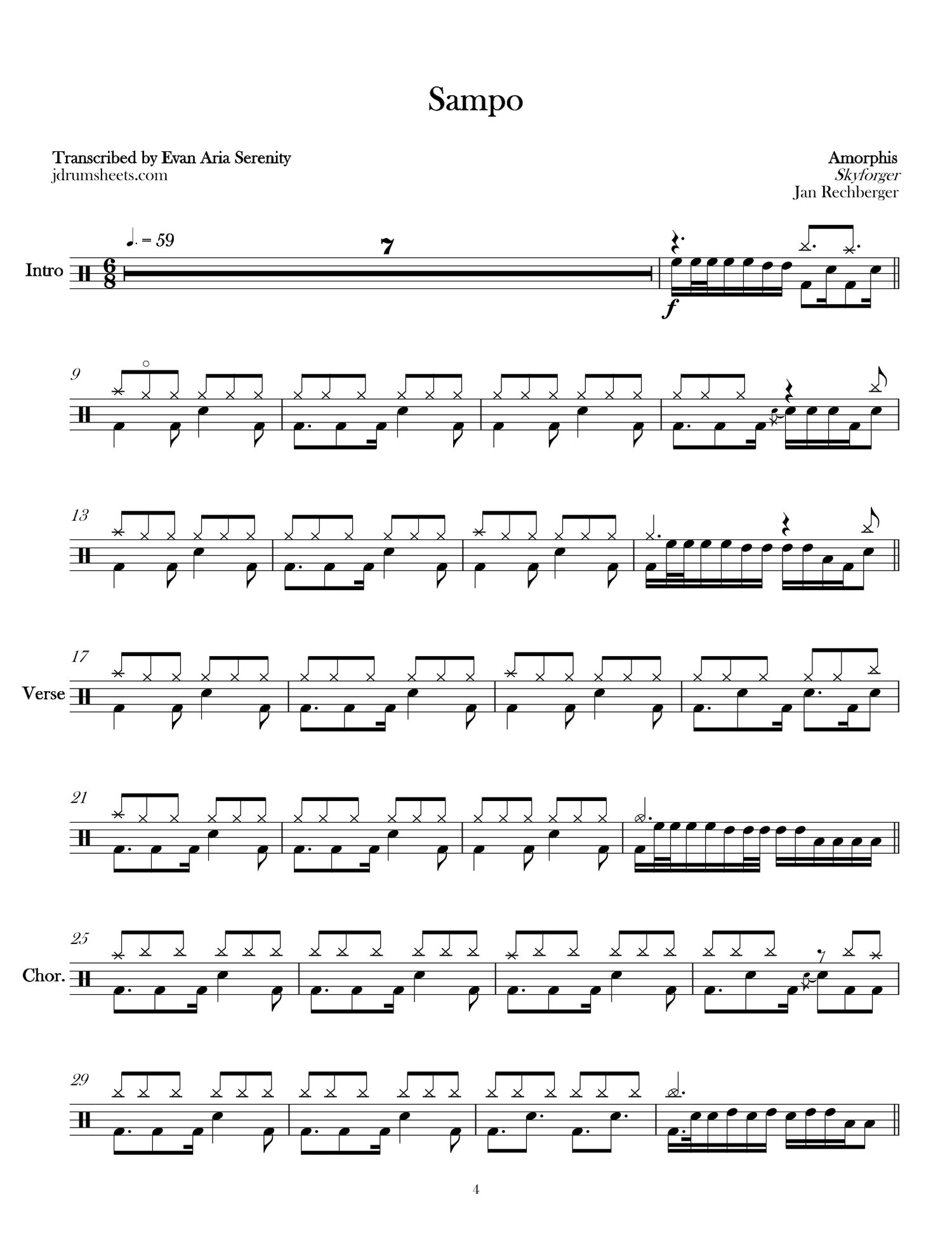 Drum sheet music transcriptions for the entirety of Amorphis's 2009 album Skyforger. Drums by Jan Rechberger. Folk death metal, overall difficulty 3/5.