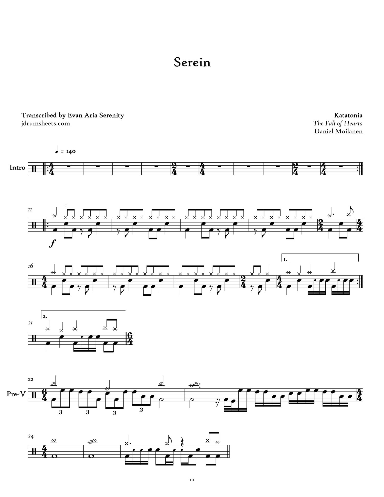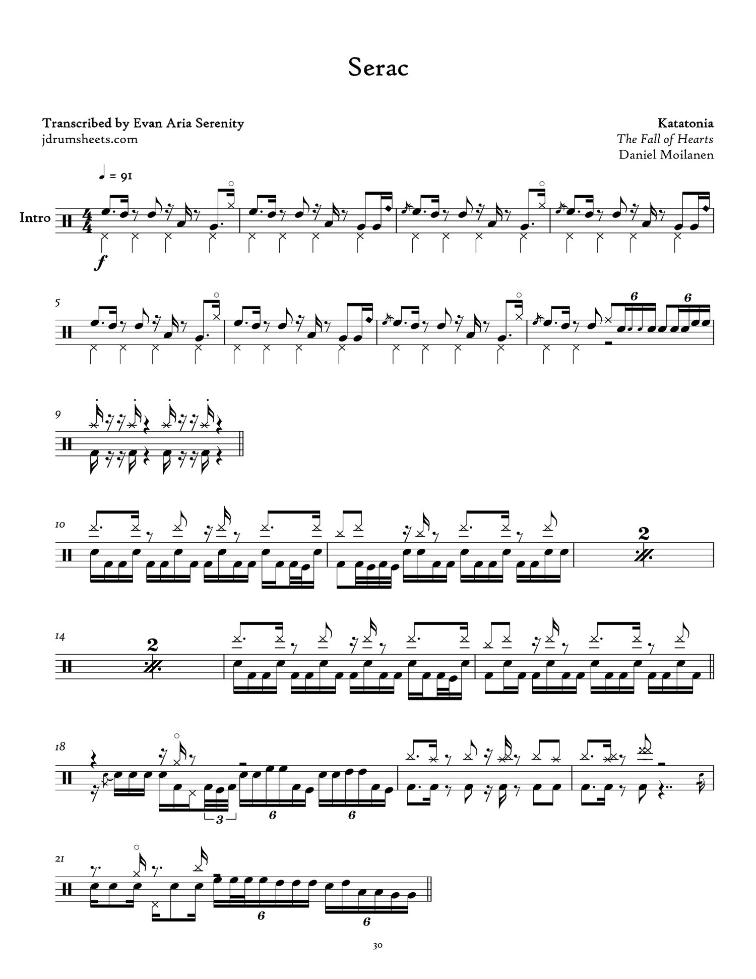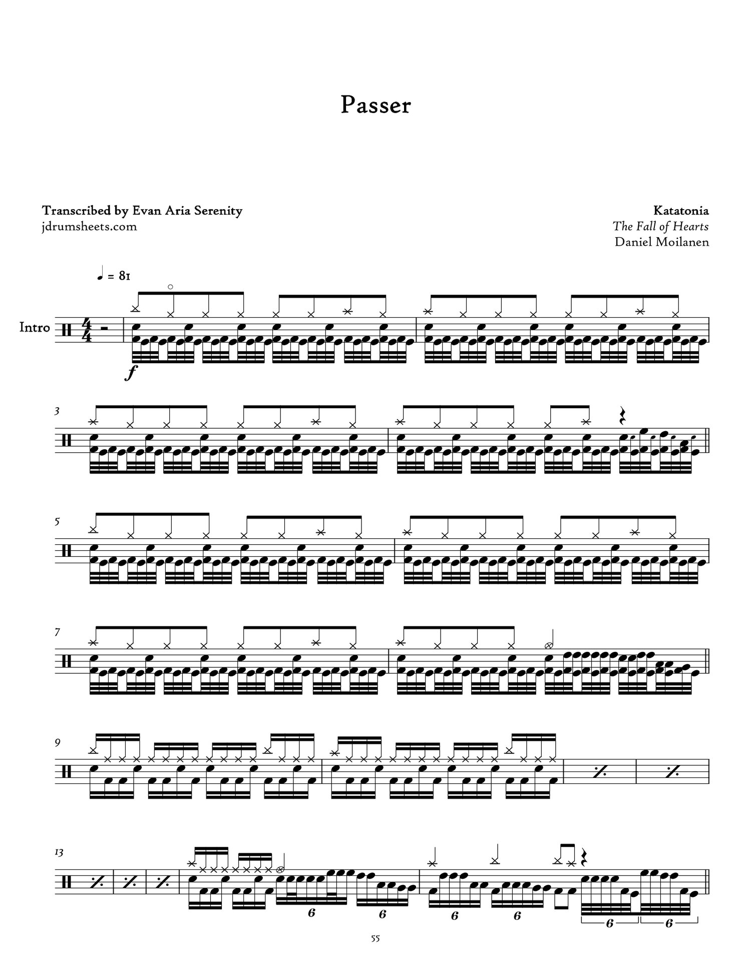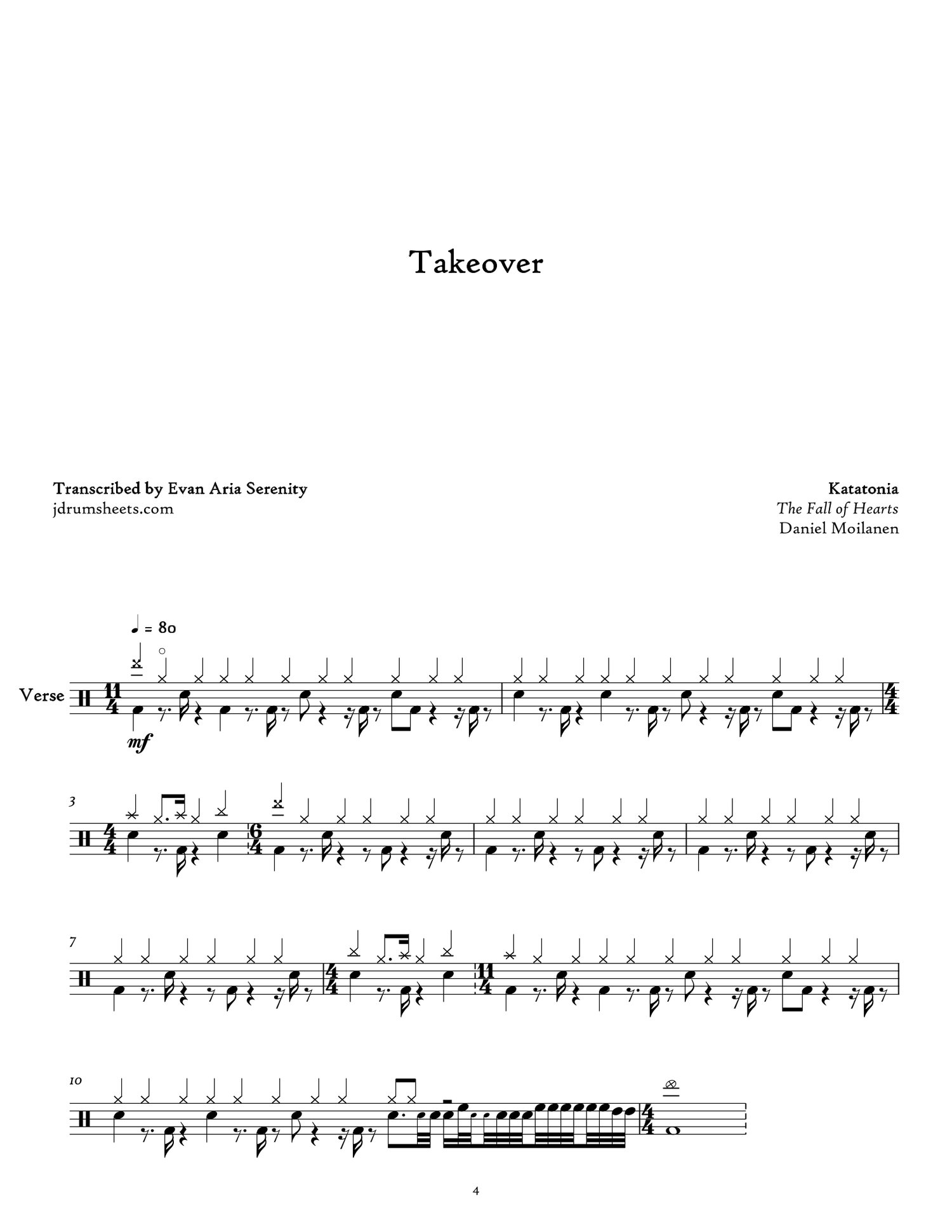 Drum sheet music transcriptions for the entirety of Katatonia's 2016 album, The Fall of Hearts. Drums by Daniel Moilanen. Progressive rock/metal, overall difficulty 5/5.