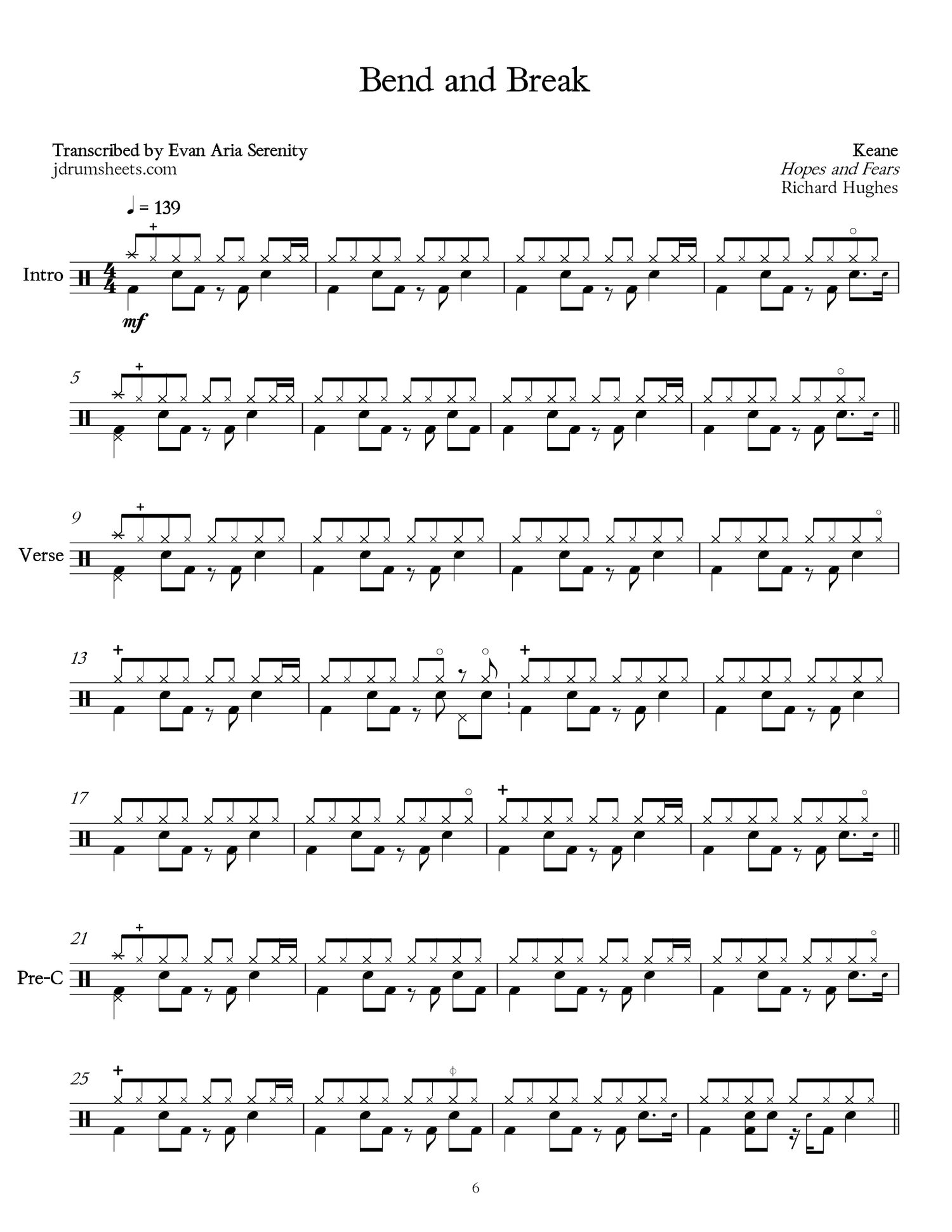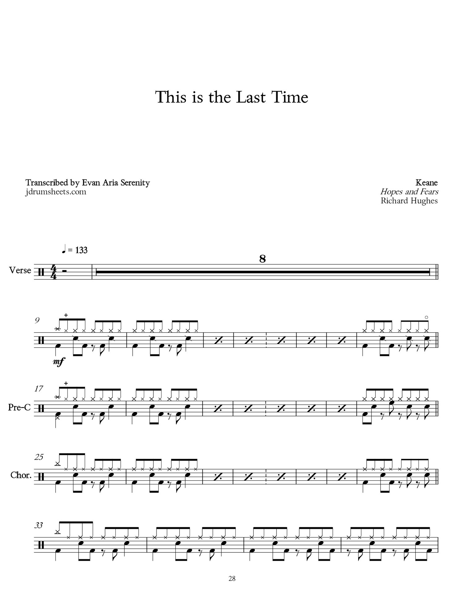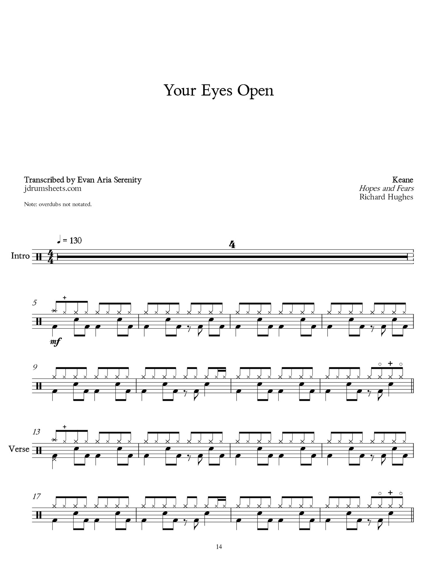 Drum sheet music transcriptions for the entirety of Keane's debut album, Hopes and Fears (2004). Drums by Richard Hughes. Piano rock, overall difficulty 3/5.