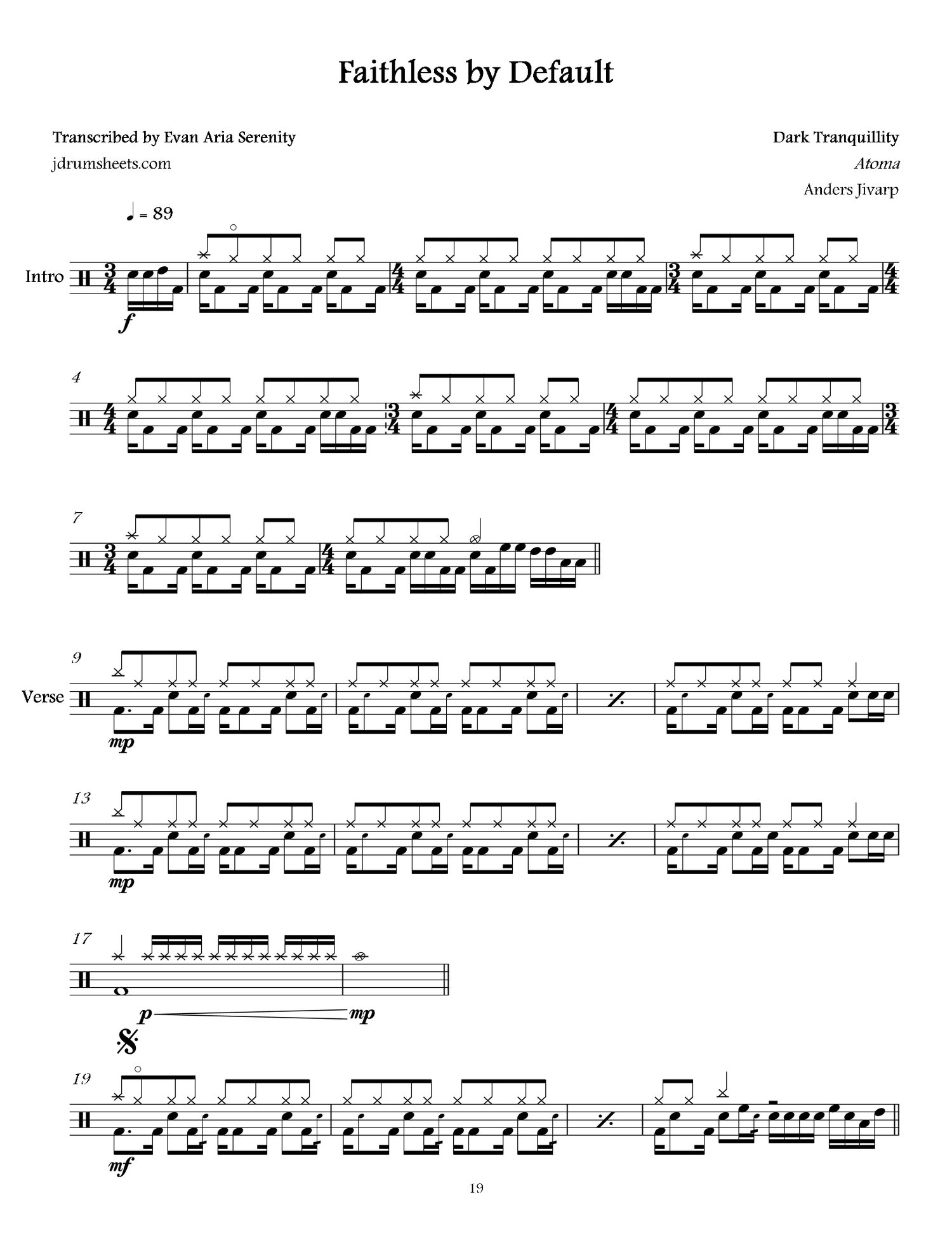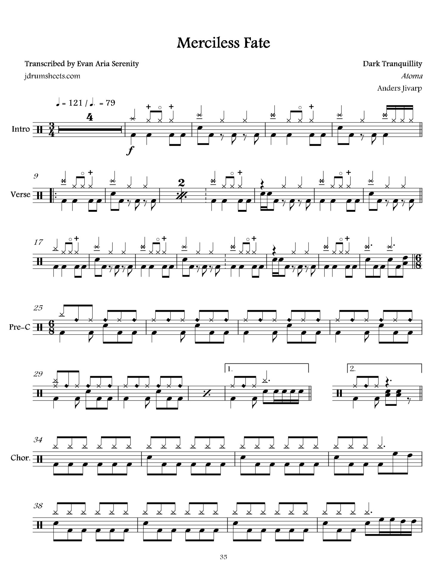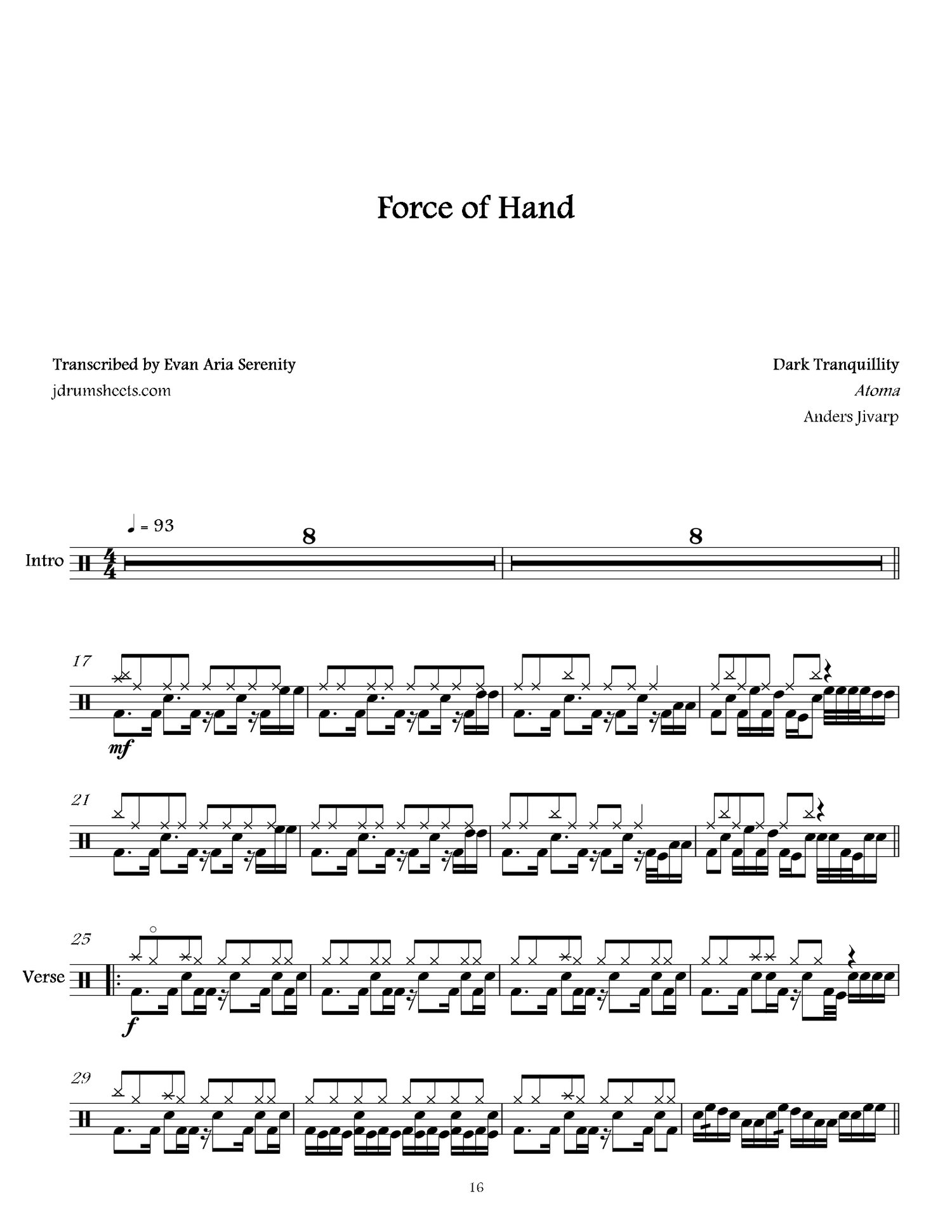 Drum sheet music transcriptions for the entirety of Dark Tranquillity's 2016 album Atoma. Drums by Anders Jivarp. Melodic death metal, overall difficulty 4/5.