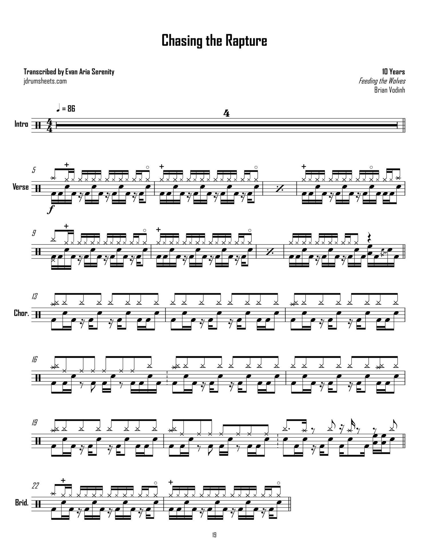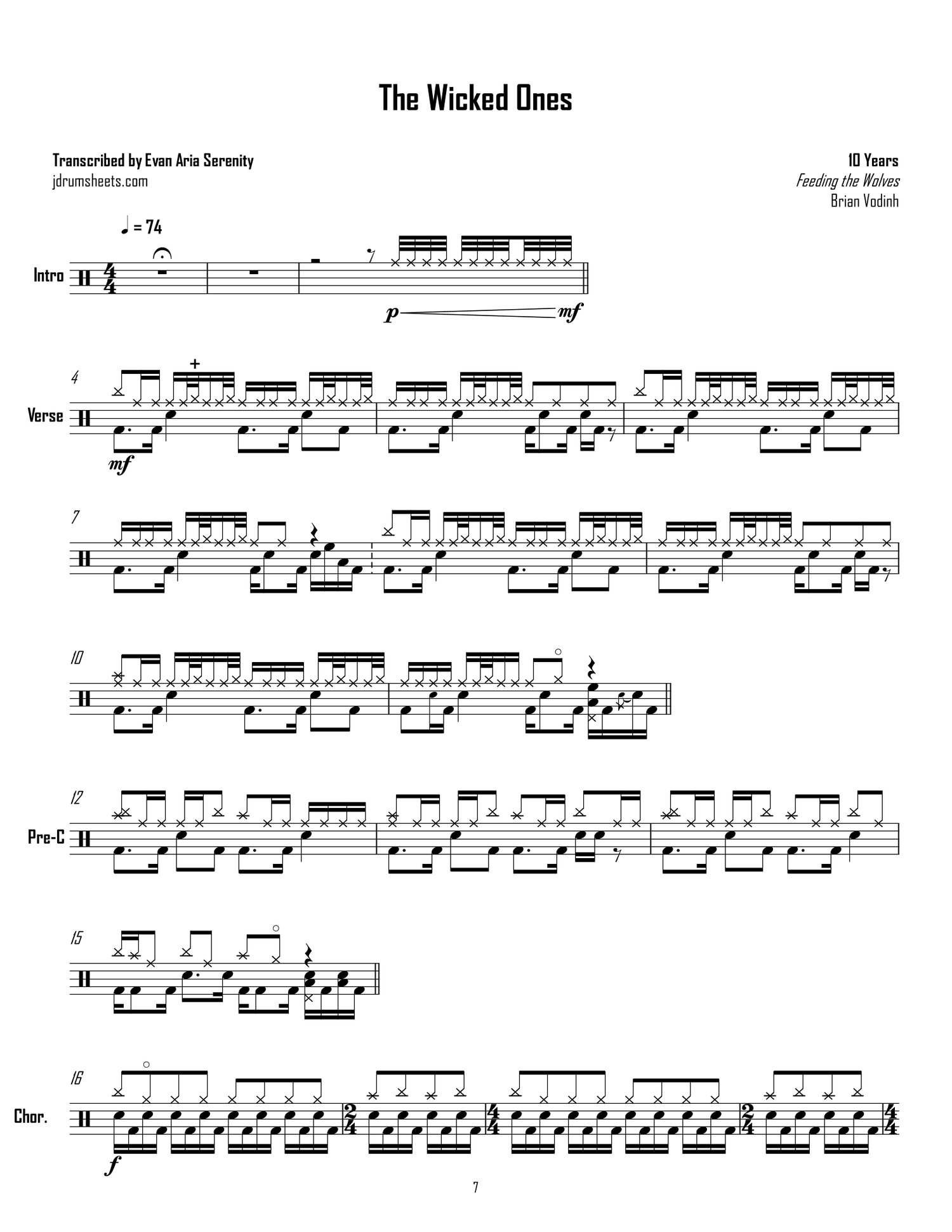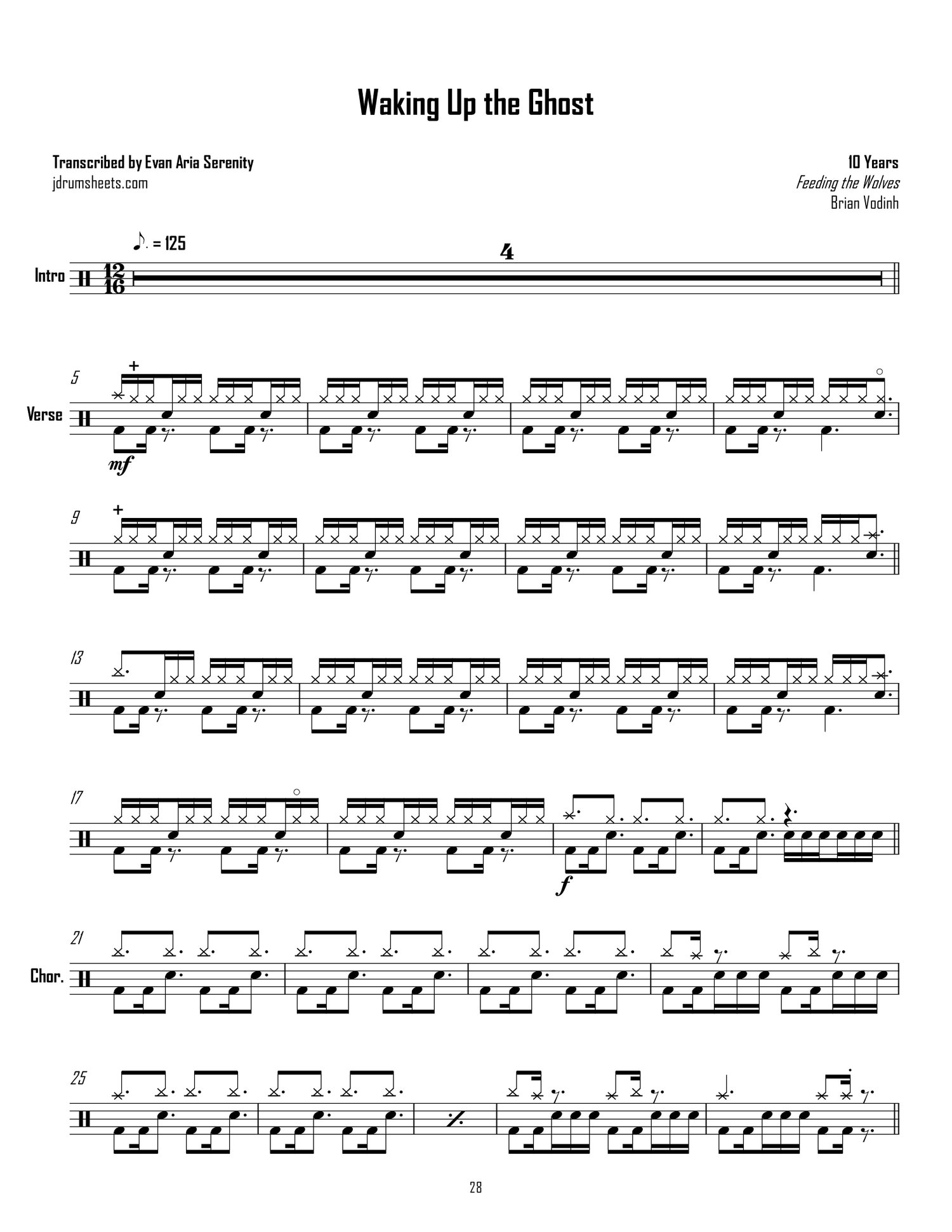 Drum sheet music transcriptions for the entirety of 10 Years's 2010 album Feeding the Wolves. Drums by Brian Vodinh. Alternative metal, overall difficulty 3/5.